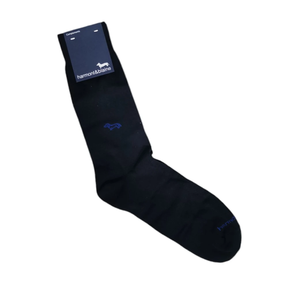 Классический тёмно-синий оттенок делает модель универсальной — такие носки легко сочетаются с деловыми костюмами, повседневной одеждой и спортивно-элегантными образами. Лаконичный дизайн дополнен аккуратным фирменным логотипом Harmont & Blaine в виде таксы, который придаёт изделию узнаваемость и подчёркивает его премиальный характер.
