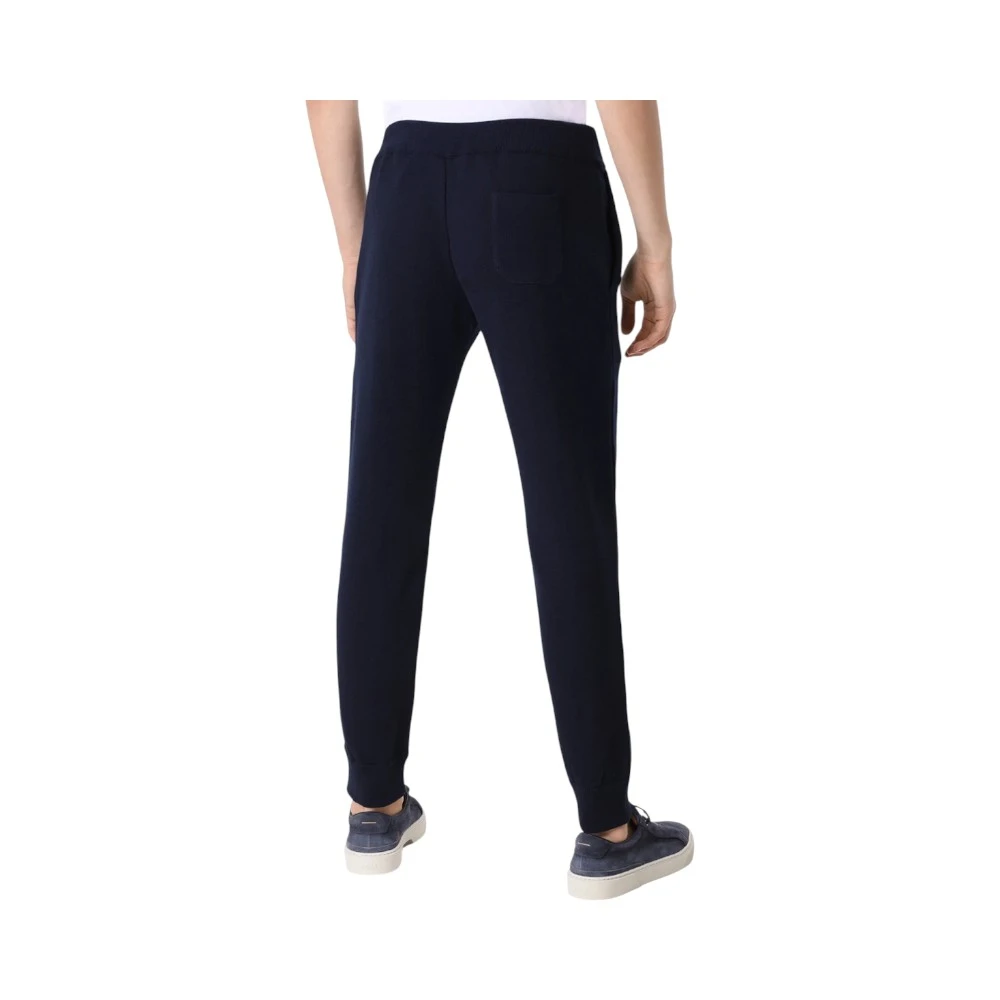 Крой модели отличается современным силуэтом с зауженной линией и эластичным поясом на шнурке, что делает посадку максимально комфортной. Манжеты внизу добавляют спортивную нотку, создавая баланс между классикой и расслабленным стилем. Детали, такие как аккуратная отделка и фирменный логотип Paul & Shark, подчёркивают высокий уровень исполнения.