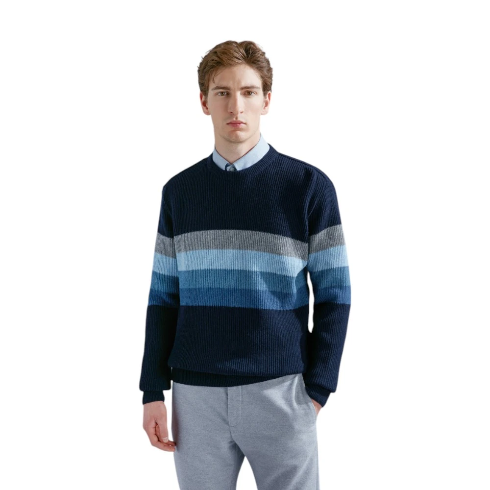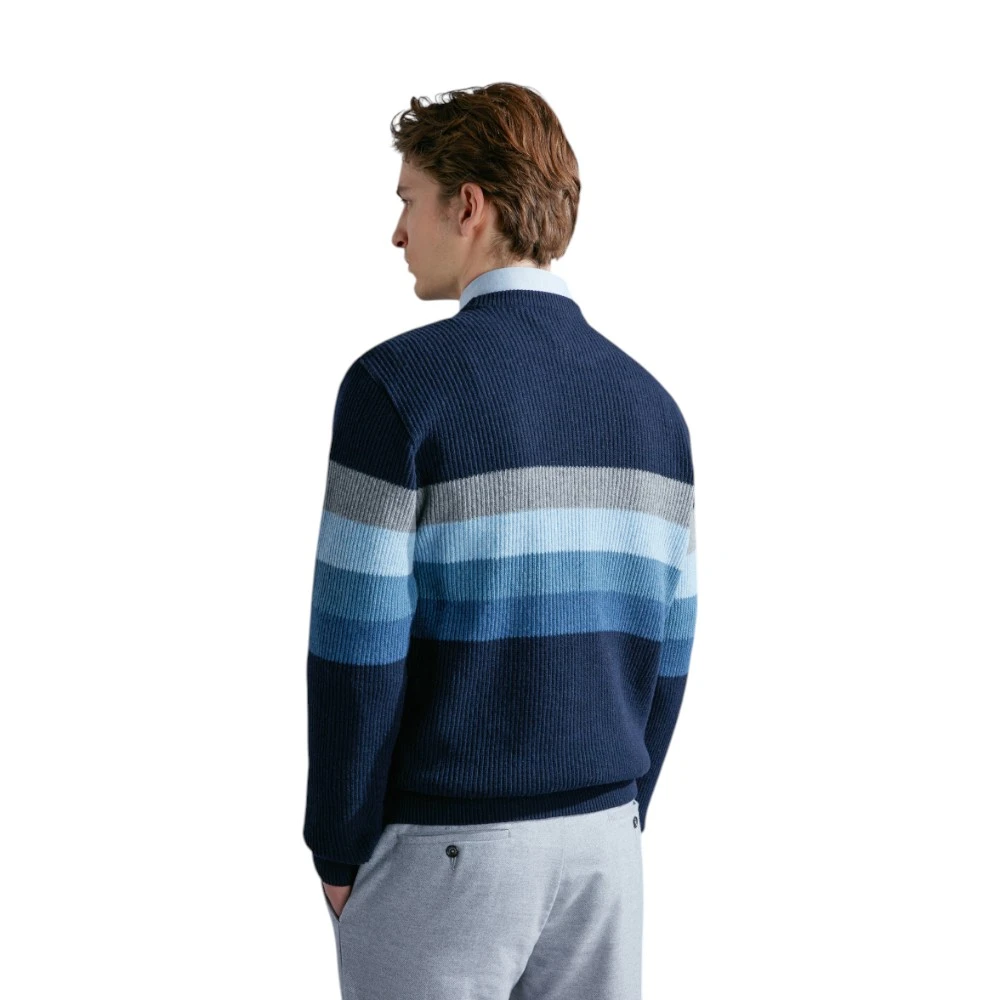 Глубокий синий оттенок в сочетании с голубыми и серыми полосами создаёт благородную морскую палитру, традиционно ассоциирующуюся с ДНК Paul & Shark. Свитер легко комбинируется с джинсами, чиносами и шерстяными брюками, позволяя создавать элегантные и расслабленные образы для офиса, путешествий и городского отдыха.