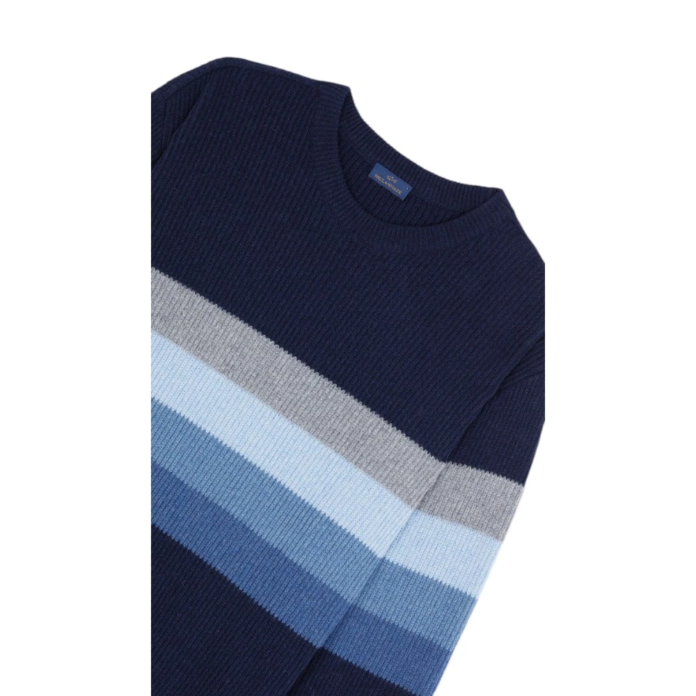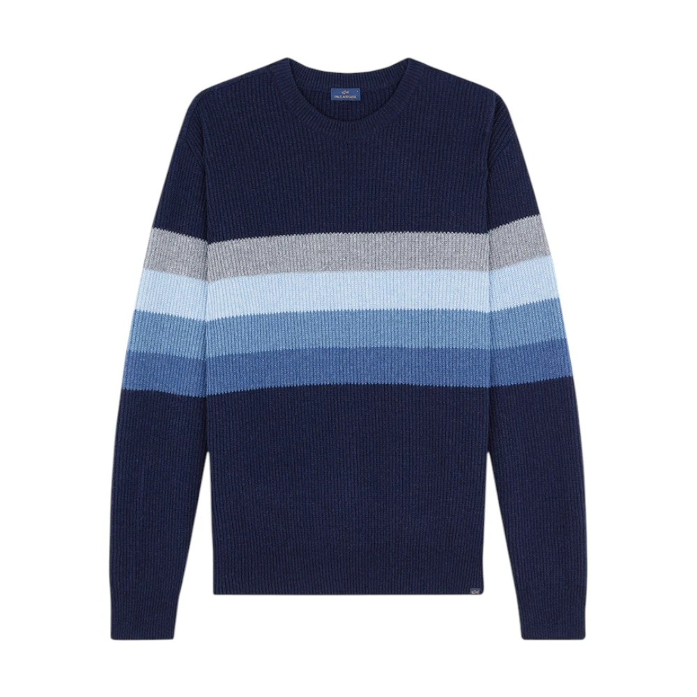 Мужской свитер Paul & Shark Men's Knitted Roundneck C.W. Wool — выразительная интерпретация классического трикотажа в эстетике современного премиального гардероба. Модель выполнена в насыщенной синей палитре с контрастными горизонтальными полосами, которые придают образу динамику и подчёркивают фирменный стиль итальянского бренда. Такой дизайн делает свитер акцентной, но при этом универсальной вещью для повседневных и smart casual сочетаний.