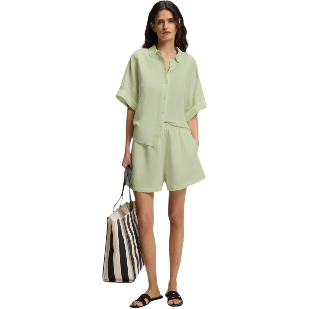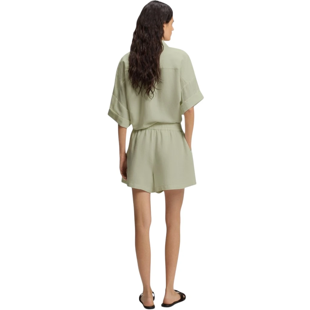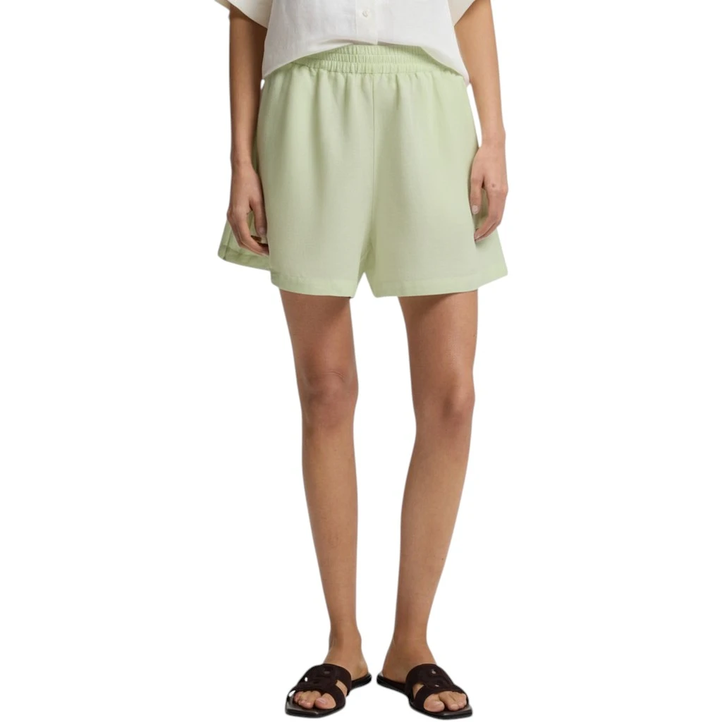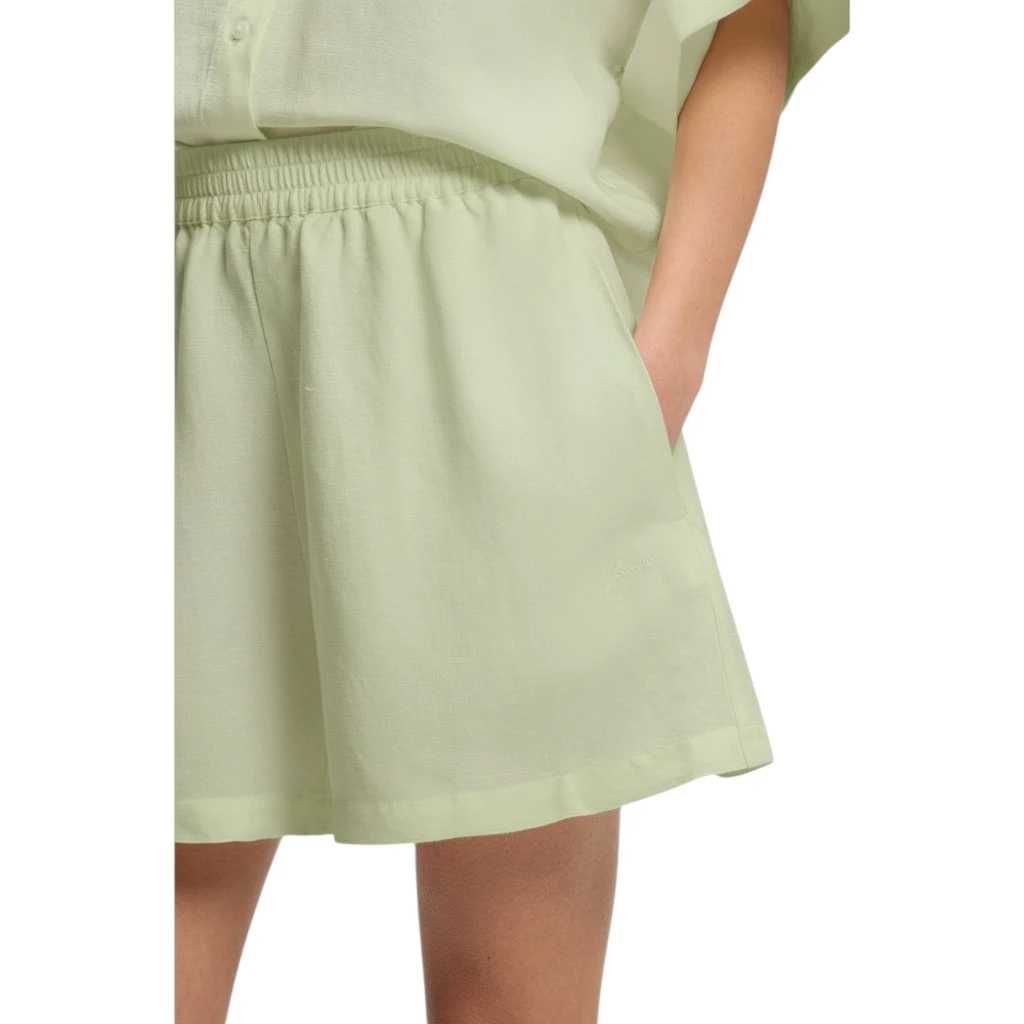 Женские шорты Boss C_Tallan в зелёном цвете — это стильное и практичное решение для тёплого сезона. Модель выполнена из натуральной смеси льна (53%) и вискозы (47%), благодаря чему ткань отличается лёгкостью, воздухопроницаемостью и приятной мягкостью. Такой состав обеспечивает комфорт даже в жаркую погоду и позволяет коже дышать, создавая ощущение свежести в течение всего дня.