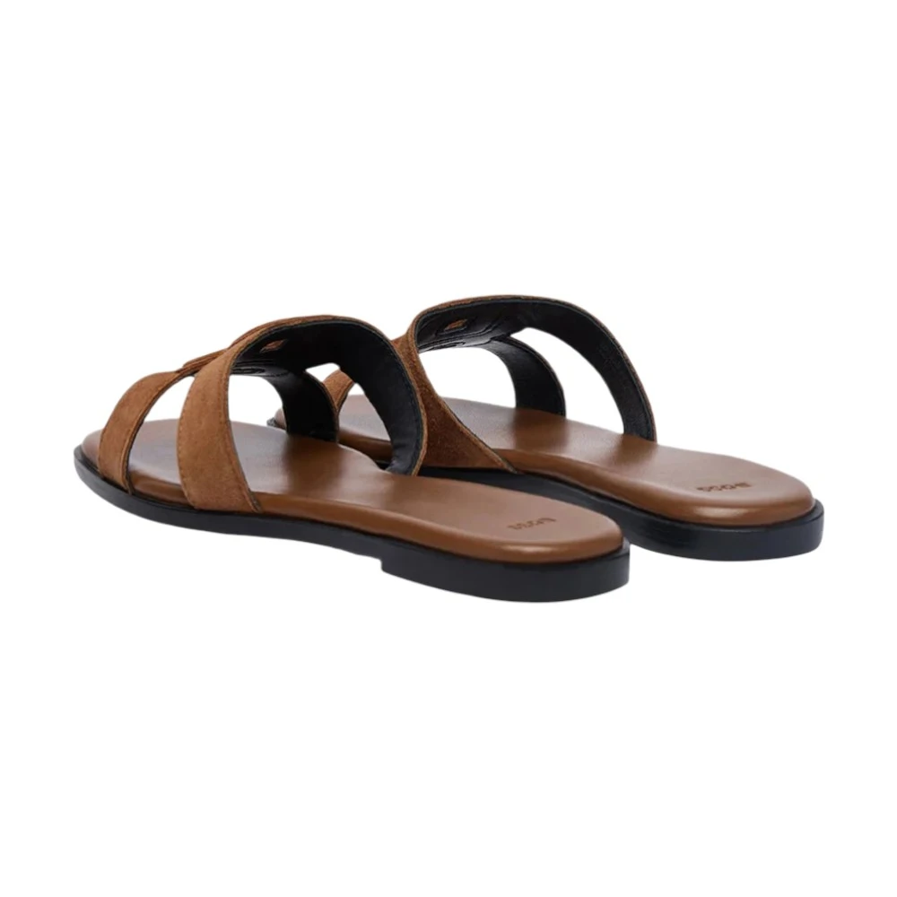 Коричневый оттенок придаёт модели универсальность и легко сочетается с летним гардеробом — от лёгких платьев до повседневных комплектов с шортами или брюками. Лаконичный дизайн подчёркивает современную эстетику бренда Boss, делая шлёпки подходящими как для отдыха, так и для городских прогулок. Простая конструкция обеспечивает лёгкость и удобство, а аккуратная посадка гарантирует уверенность в каждом шаге.