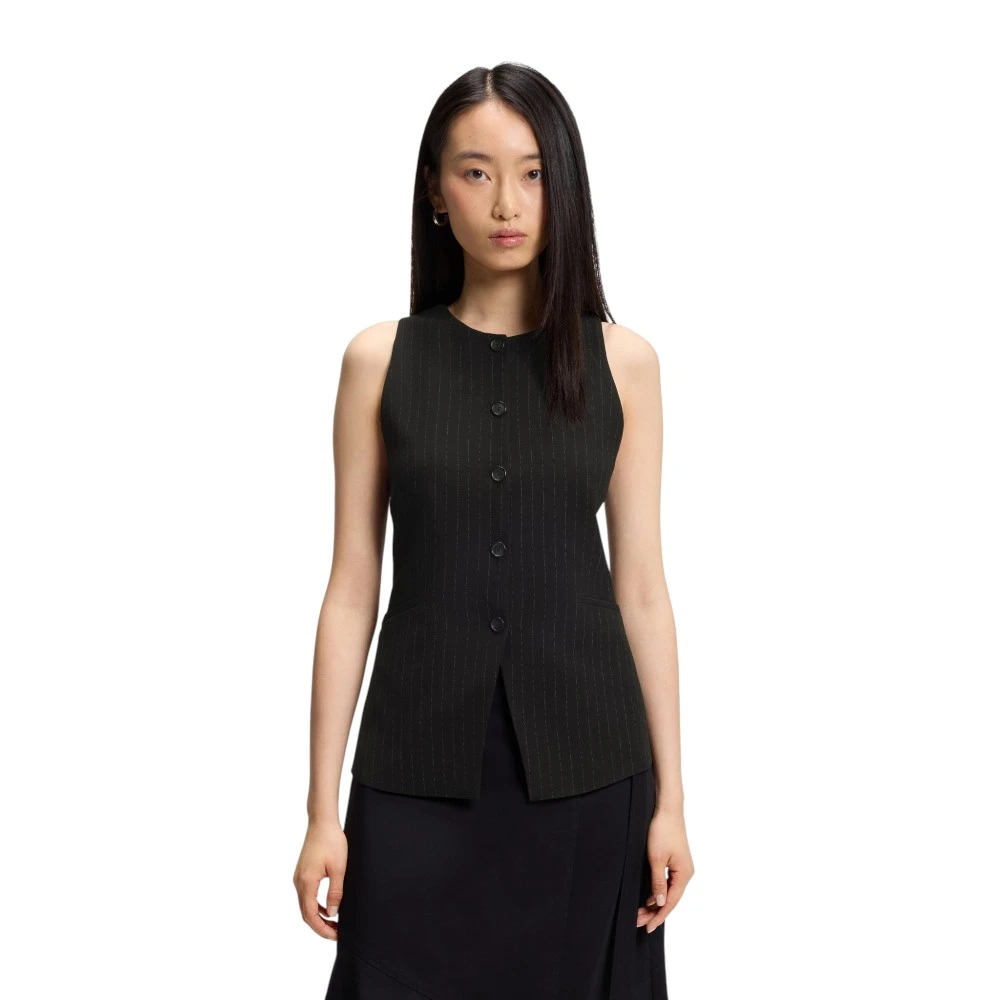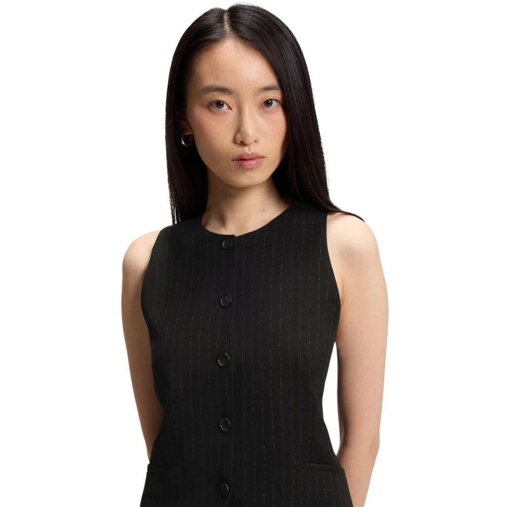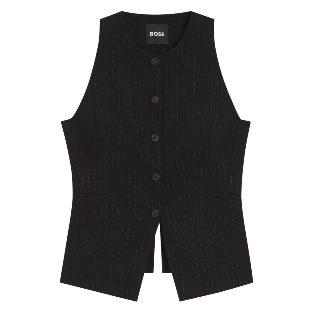 Женский жилет Boss Juleran в классическом черном цвете — это универсальная модель, которая легко впишется в современный гардероб и подчеркнет утончённый вкус. Лаконичный дизайн и продуманный крой делают изделие идеальным выбором как для деловых образов, так и для повседневных сочетаний. Жилет выполнен из 100% вискозы — мягкого, приятного к телу материала, который обеспечивает комфорт при носке и красиво драпируется, создавая элегантный силуэт.