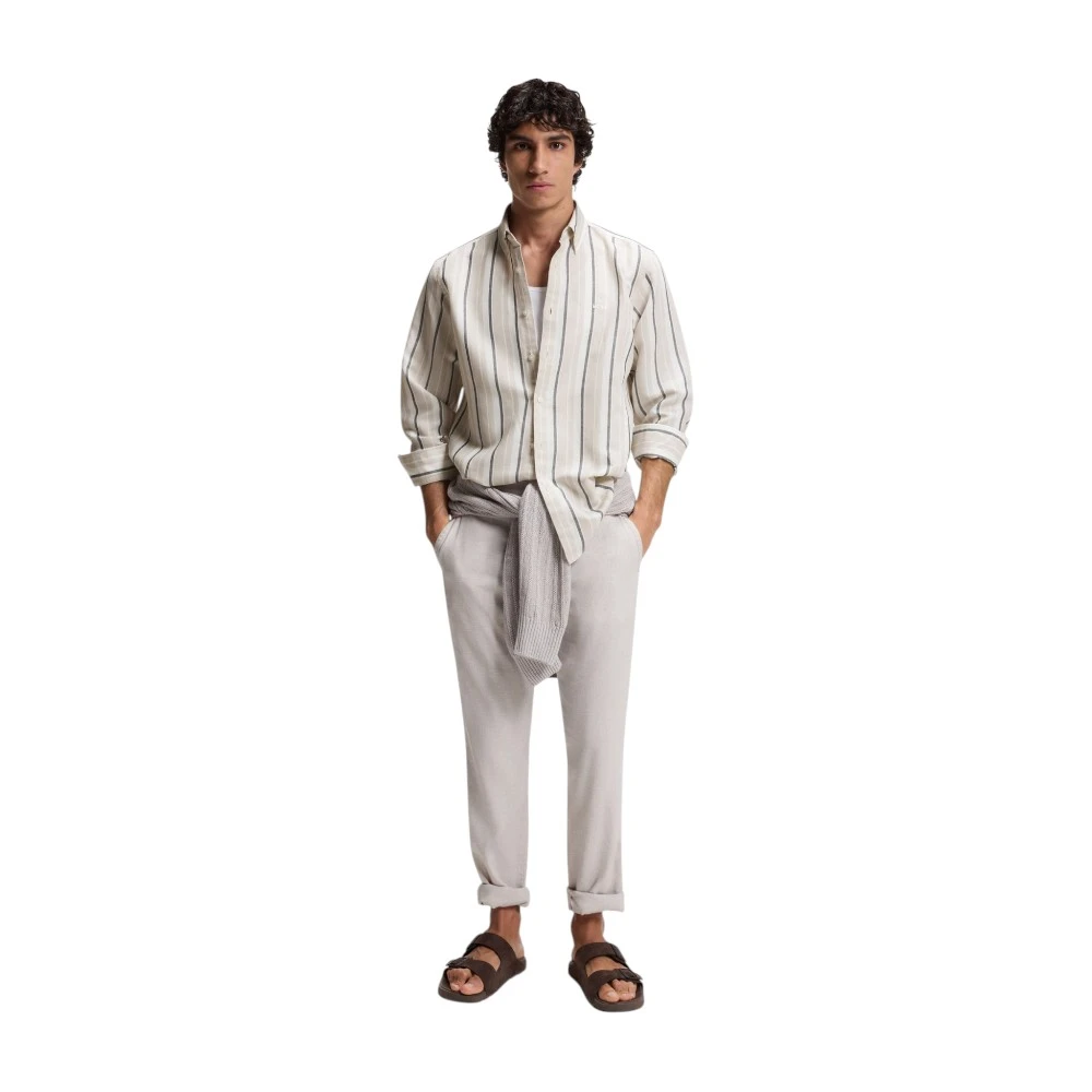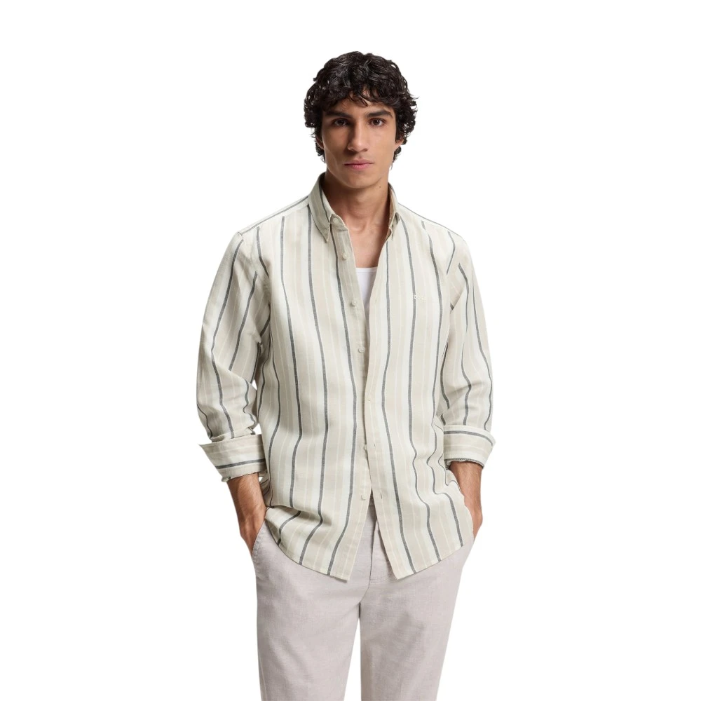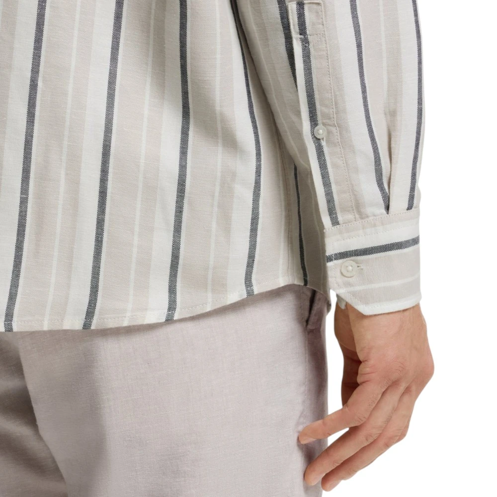 Ткань из 57% льна и 43% хлопка обеспечивает идеальный баланс между лёгкостью и мягкостью. Лён отвечает за воздухопроницаемость и ощущение прохлады в тёплую погоду, а хлопок добавляет комфорт и делает материал более приятным к телу. Такое сочетание делает рубашку отличным выбором для длительной носки и активного дня.