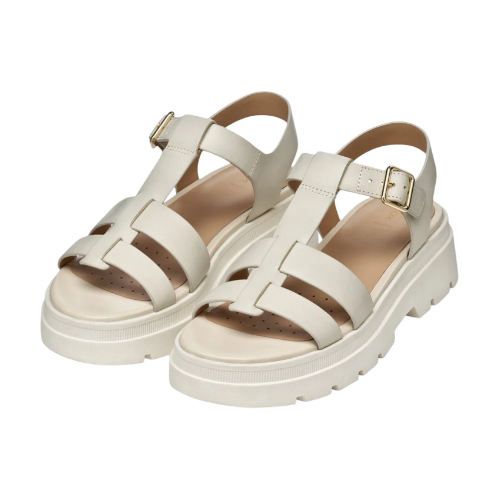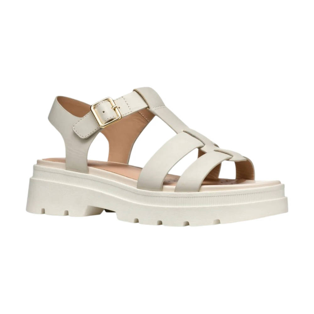 Женские сандалии Geox Adacter S B Woman в кремовом цвете — современная модель, сочетающая минималистичный дизайн, трендовую массивную подошву и фирменный комфорт бренда Geox. Универсальный светлый оттенок делает эту пару идеальным выбором для летнего гардероба: сандалии легко сочетаются с платьями, льняными костюмами, джинсами, юбками и повседневными city-casual образами. Лаконичный силуэт с широкими ремешками подчёркивает актуальный городской стиль и делает модель выразительной без лишнего декора.