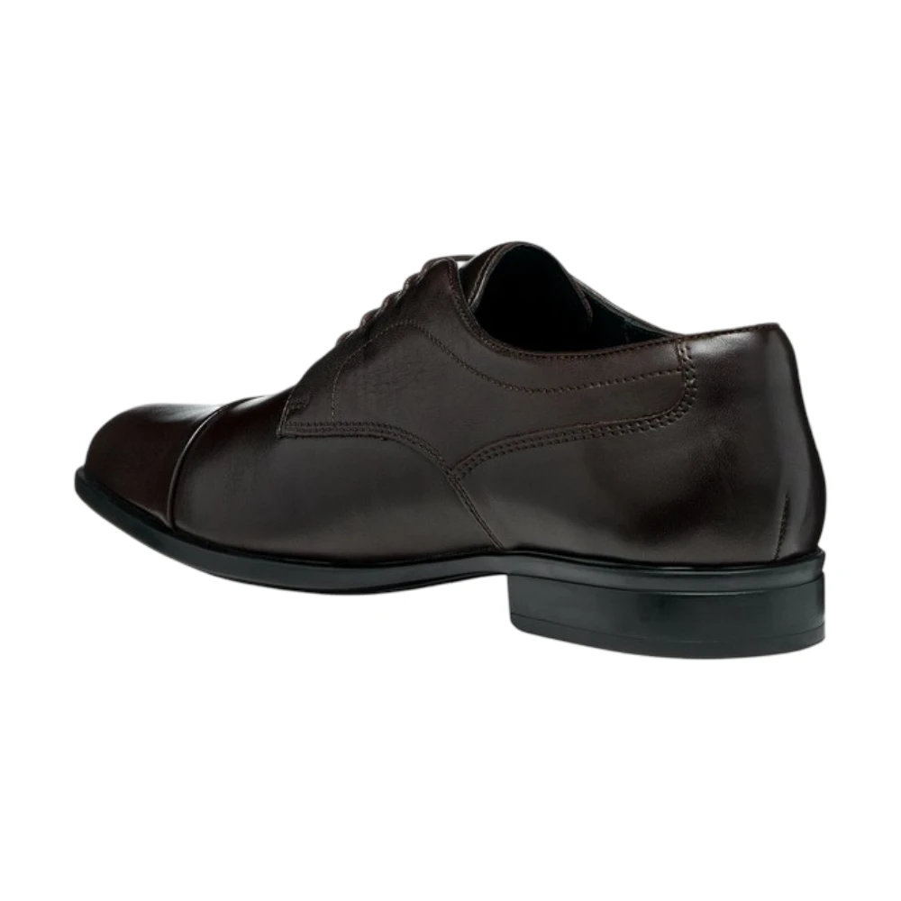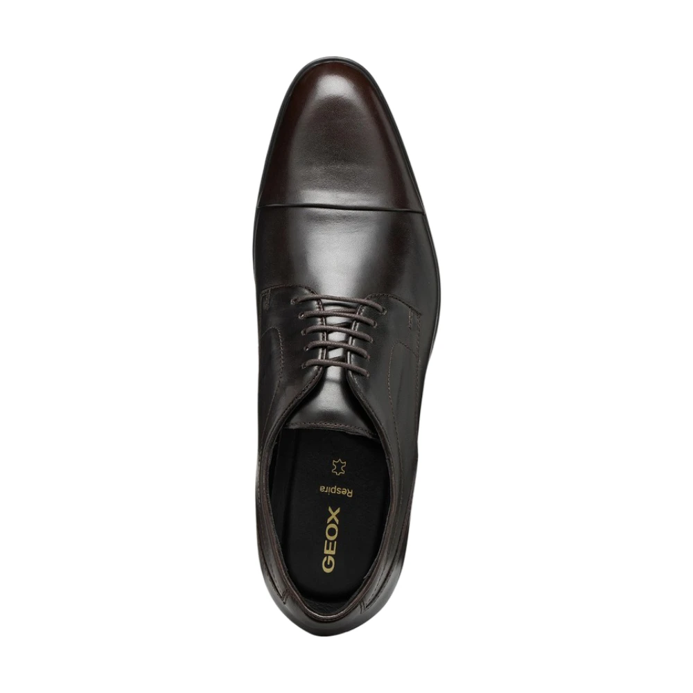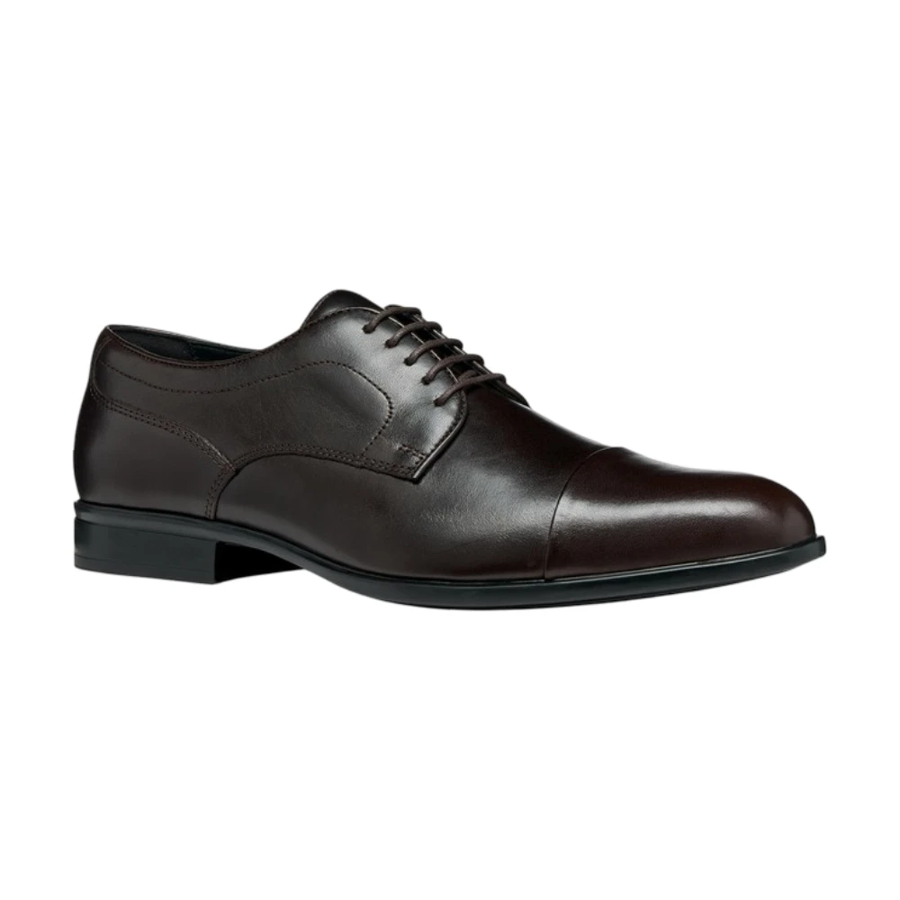 Мужские туфли Geox Iacopo Man — классическая модель, которая сочетает в себе элегантность, сдержанный стиль и комфорт для повседневного использования. Выполненные из натуральной кожи, туфли отличаются аккуратным силуэтом, благородной фактурой и высоким уровнем комфорта при длительном ношении. Темно-коричневый оттенок придаёт модели статусный и универсальный характер, позволяя легко сочетать её с деловым гардеробом и smart-casual образами.
