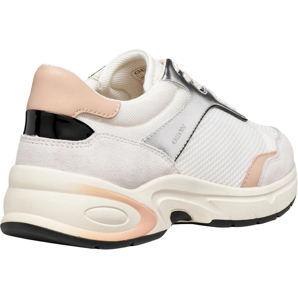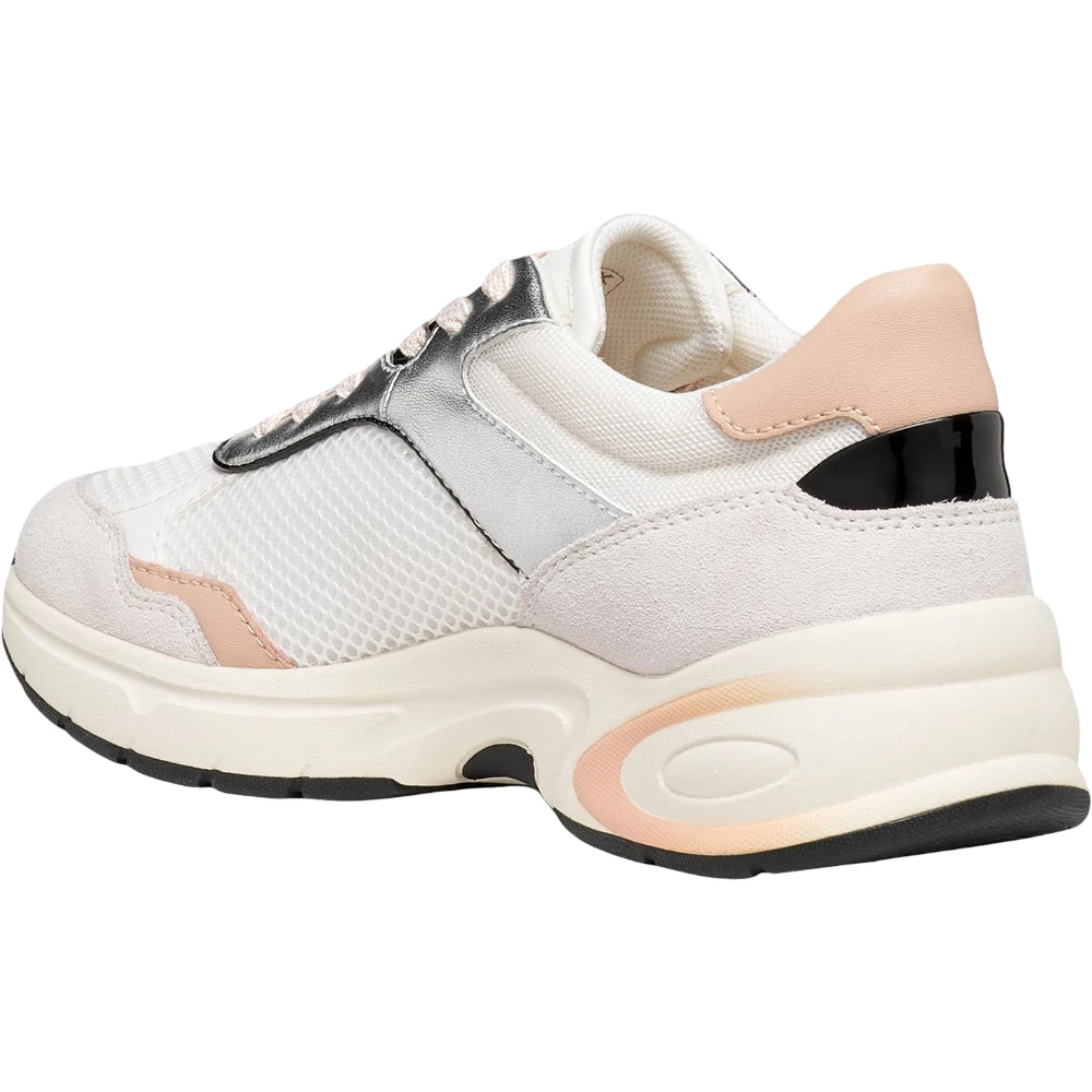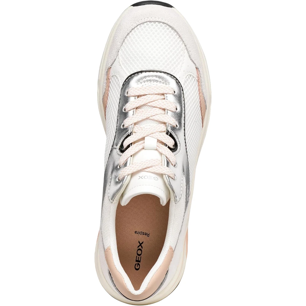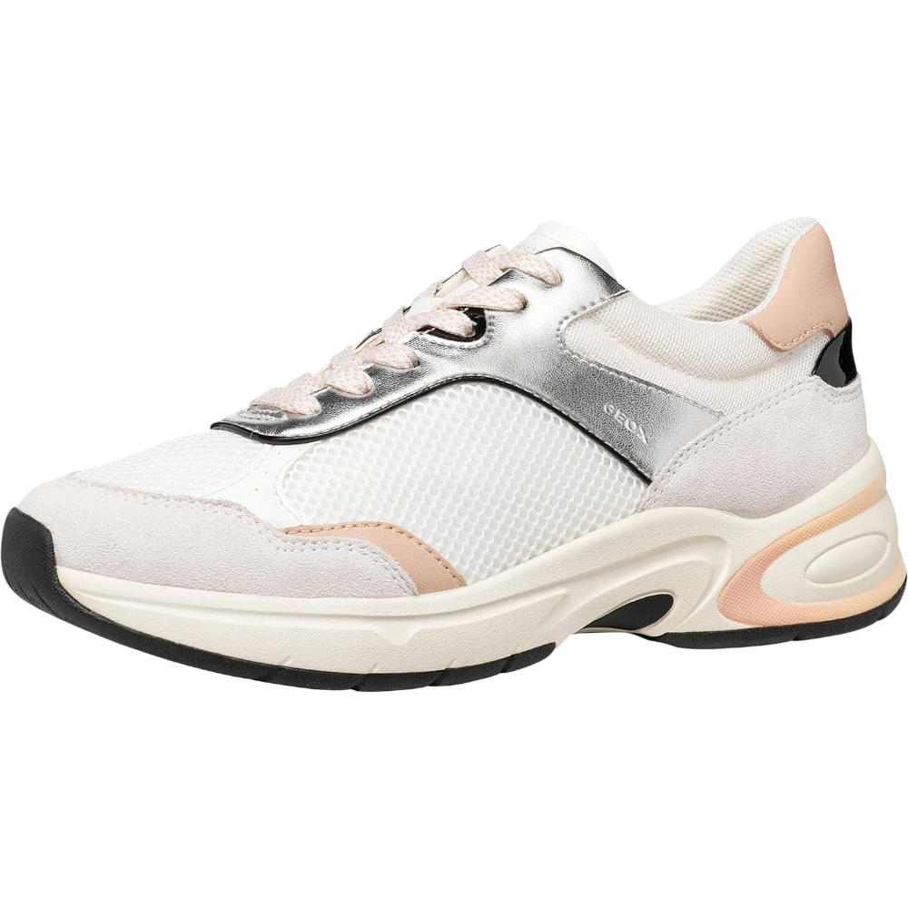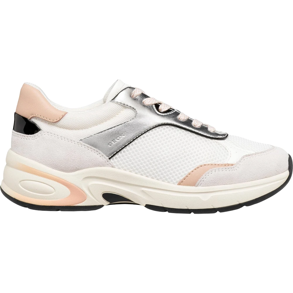 Женские кроссовки Geox Zarvia — это сочетание выразительного дизайна, продуманной эргономики и фирменных технологий комфорта. Модель выполнена в светлой палитре с контрастными элементами и металлическими вставками, что придаёт обуви современный и динамичный характер. Такие кроссовки легко впишутся в городской гардероб, добавляя образу свежесть и стиль.