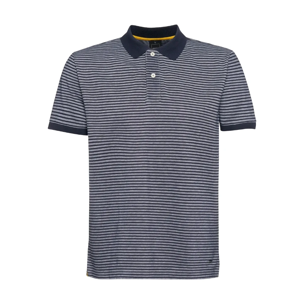 Деликатный полосатый рисунок добавляет глубину цвету и делает модель визуально интересной, сохраняя при этом универсальность. Темно-синий оттенок выглядит благородно и легко вписывается как в повседневные, так и в более аккуратные образы. Классический крой обеспечивает правильную посадку и свободу движений, а воротник на пуговицах сохраняет форму и подчёркивает аккуратность силуэта.