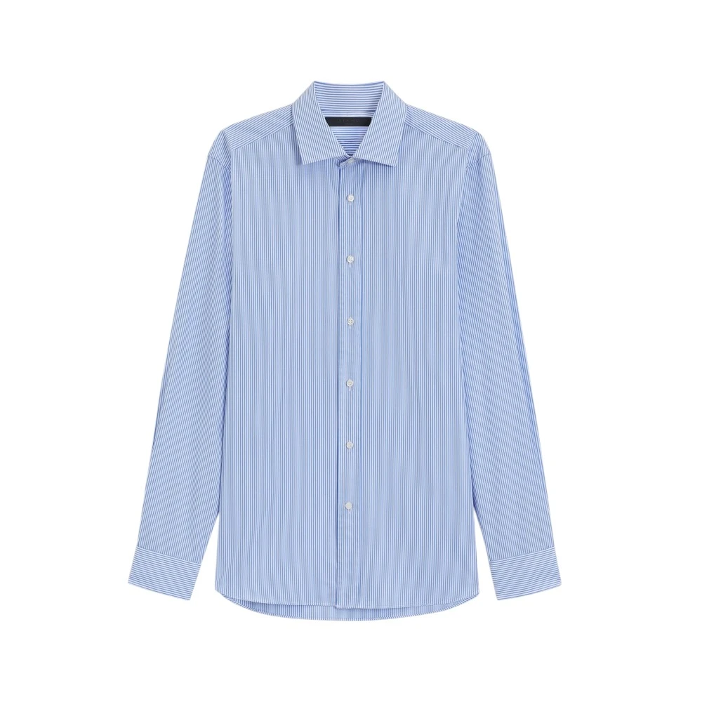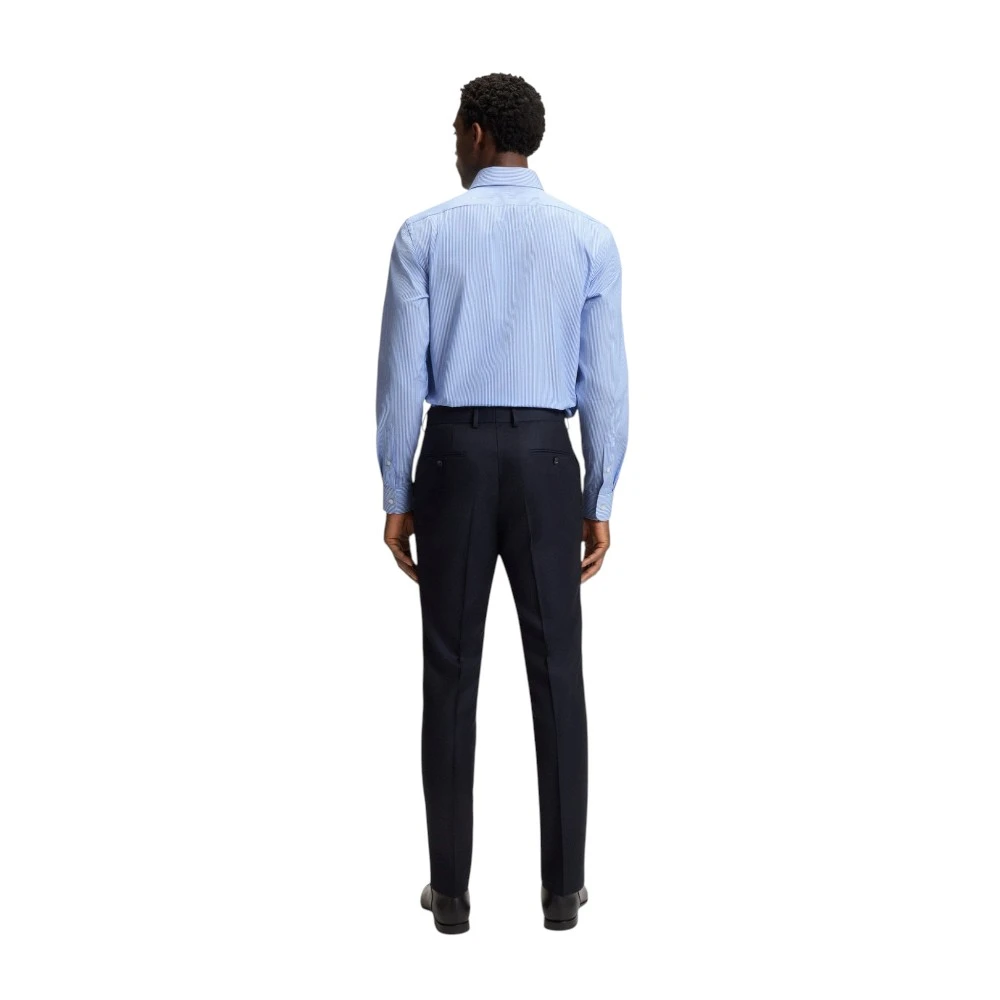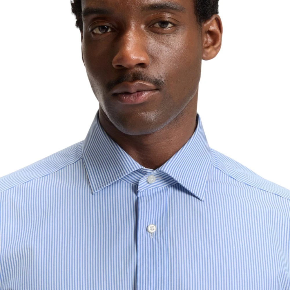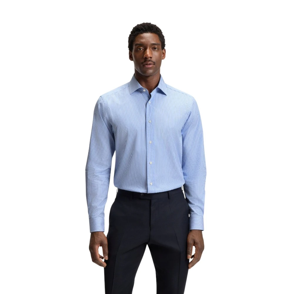 Голубой цвет придаёт модели свежесть, лёгкость и утончённую элегантность. Такой оттенок гармонично сочетается с классическими брюками, джинсами, костюмами и пиджаками, позволяя создавать как строгие деловые образы, так и современные smart casual комплекты. Воротник spread придаёт рубашке более выразительный и статусный вид, а классический крой обеспечивает удобную посадку и свободу движений. Фирменный стиль Boss подчёркивает хороший вкус и уверенность владельца.