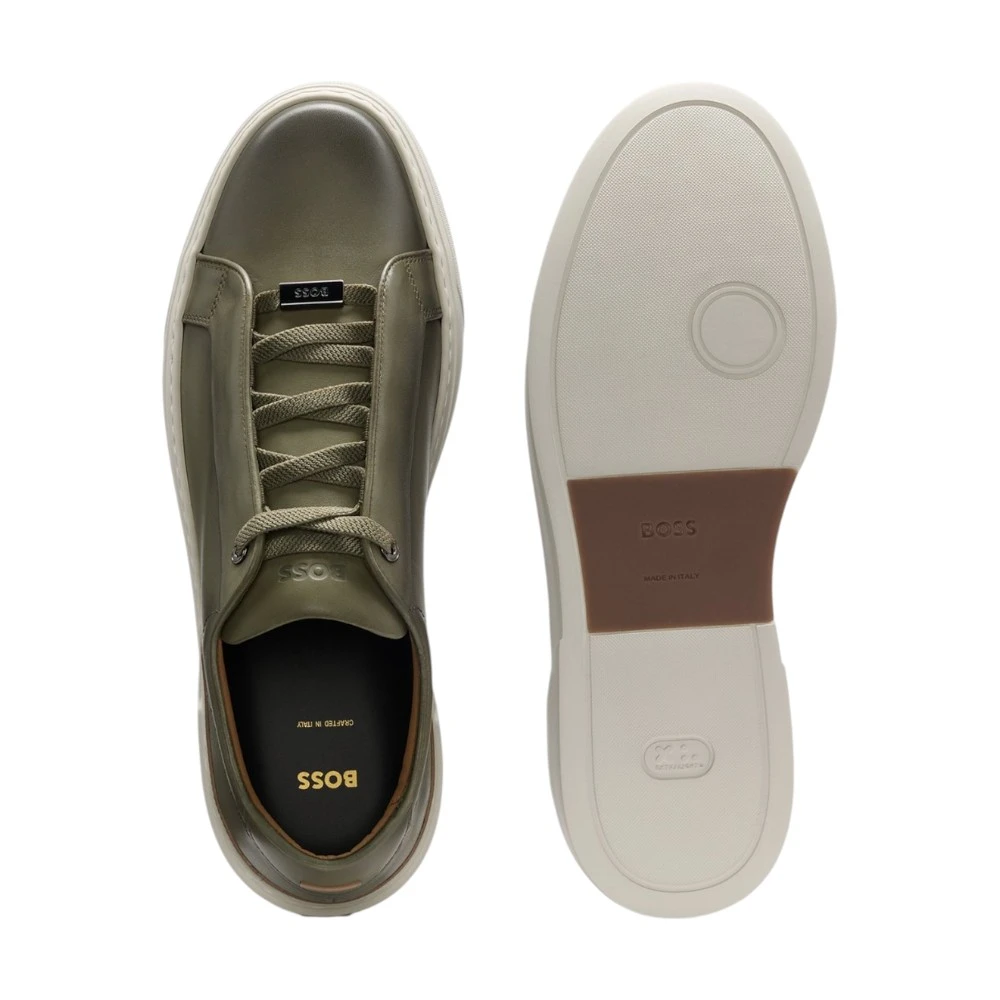 Мужские кожаные кеды Boss Gary в оливковом цвете — стильное решение для тех, кто ценит оригинальные оттенки, комфорт и премиальное качество. Модель выполнена из натуральной кожи и отличается современным лаконичным дизайном, который легко вписывается в повседневный и городской гардероб.
