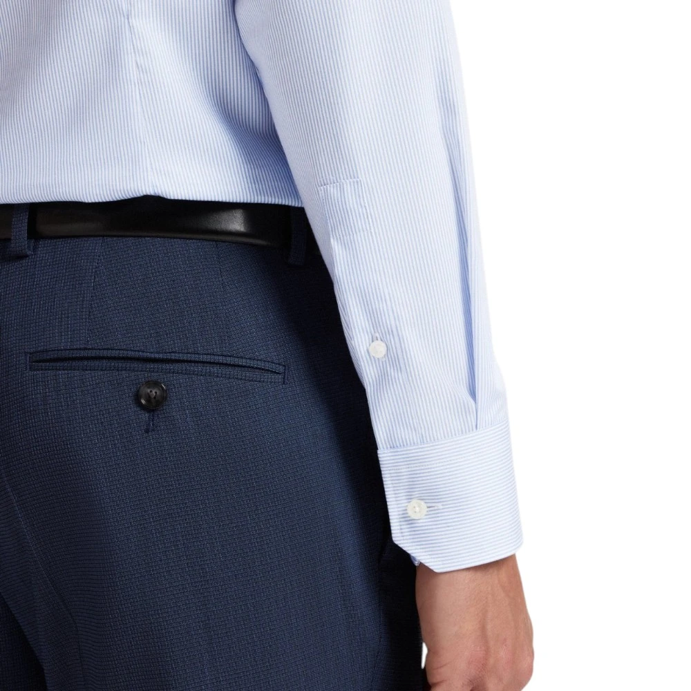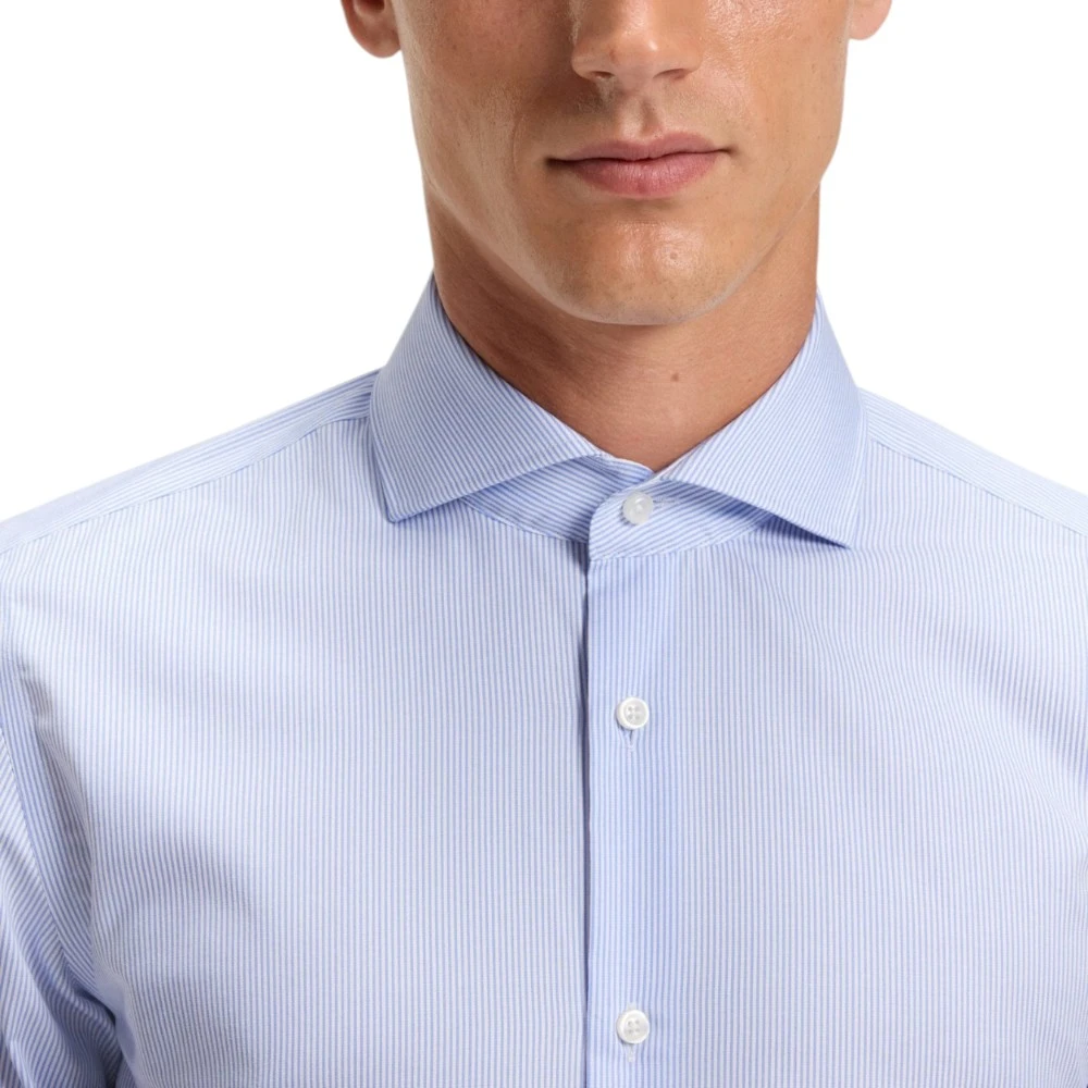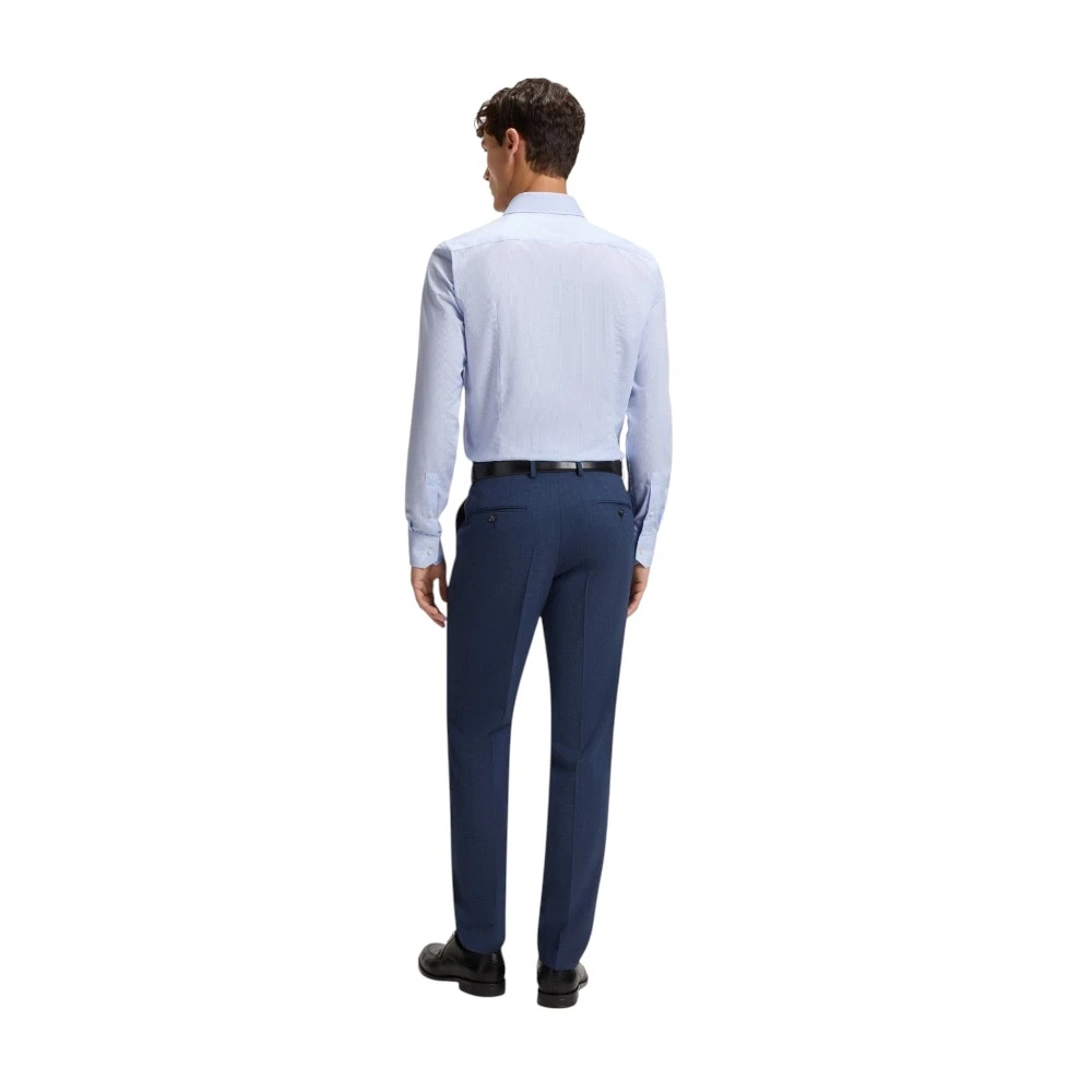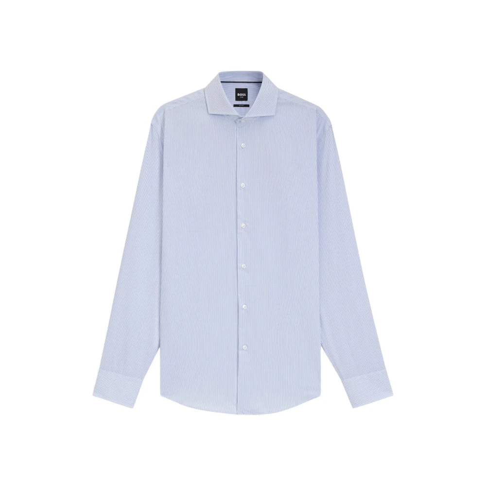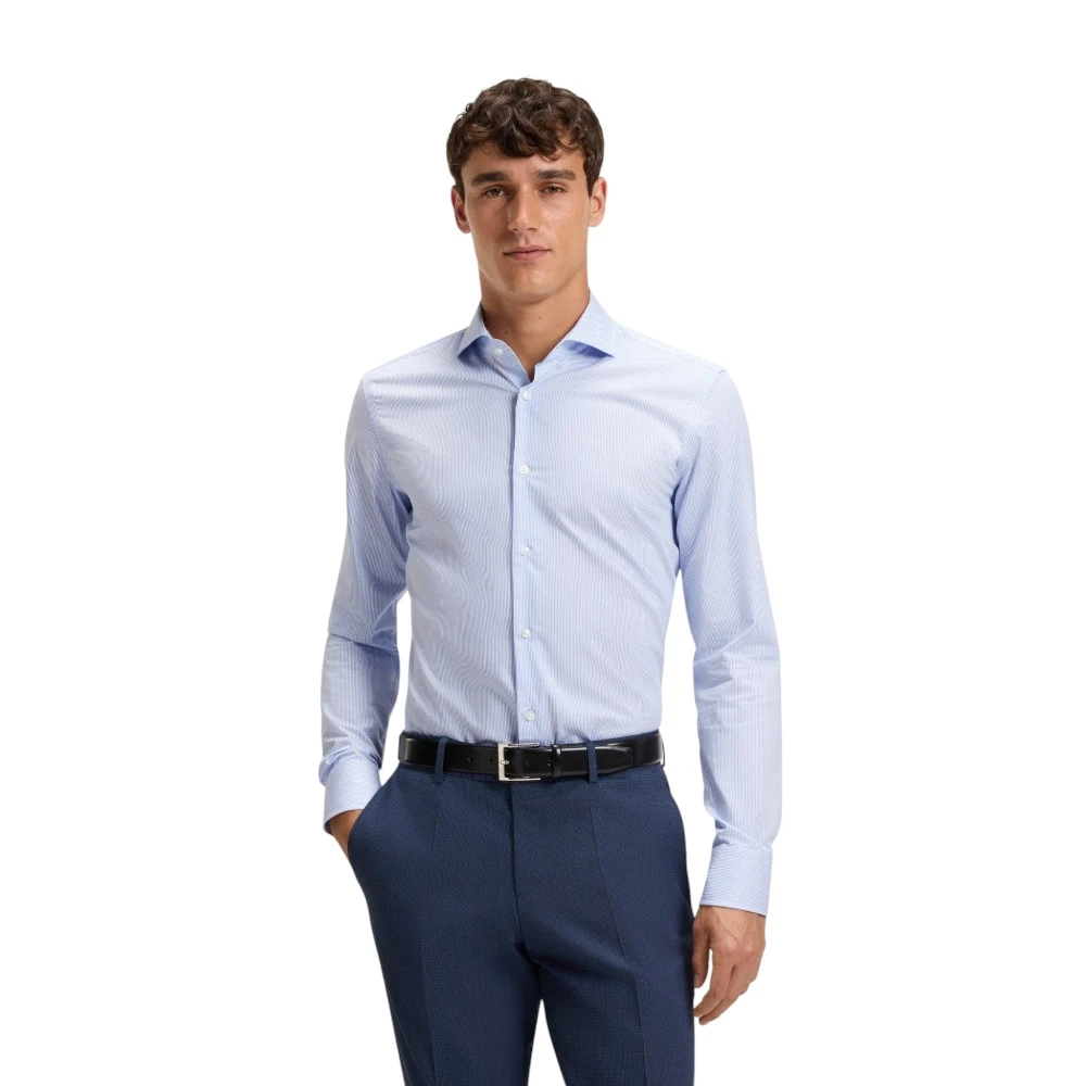 Голубой цвет придаёт модели свежесть, лёгкость и утончённую элегантность. Такой оттенок гармонично сочетается с классическими брюками, джинсами, костюмами и пиджаками, позволяя создавать как строгие деловые образы, так и стильные smart casual комплекты. Классический крой обеспечивает удобную посадку и свободу движений, а лаконичный фирменный стиль Boss подчёркивает хороший вкус и статус владельца.