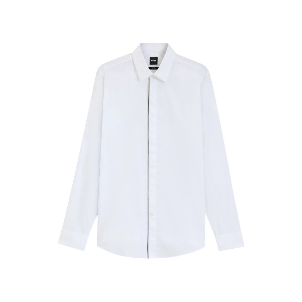 Белый цвет делает рубашку базовым элементом мужского гардероба. Она легко сочетается с классическими брюками, джинсами, костюмами и пиджаками, позволяя создавать как строгие деловые образы, так и более расслабленные smart casual комплекты. Классический крой обеспечивает удобную посадку и свободу движений, а лаконичный фирменный стиль Boss подчёркивает статус и хороший вкус владельца.