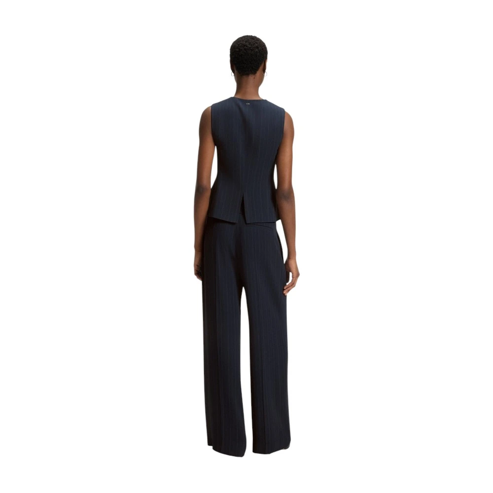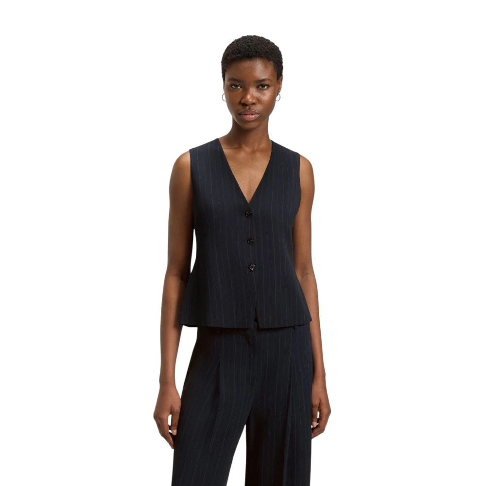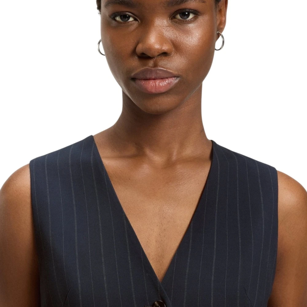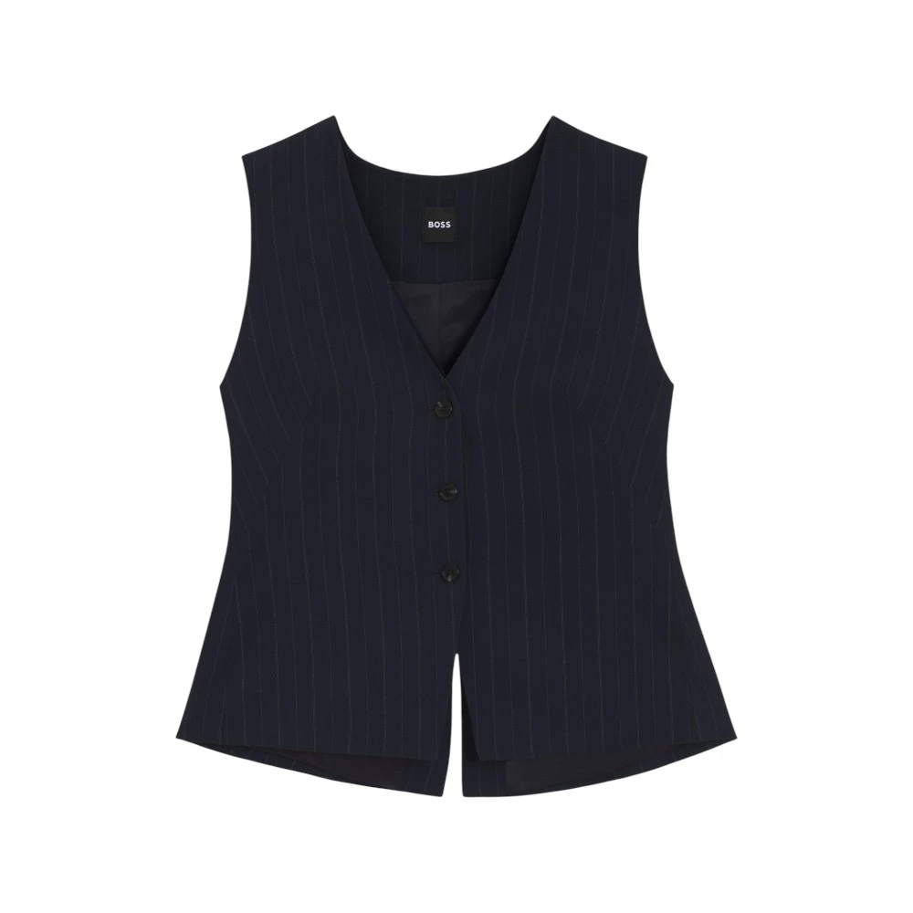Графитовый цвет придаёт модели универсальность и современный характер. Такой оттенок легко сочетается с белыми рубашками, базовыми футболками, водолазками, брюками, юбками и джинсами. Жилет помогает создавать как строгие деловые образы, так и стильные casual-комплекты. Лаконичный крой и фирменная эстетика Boss подчёркивают элегантность и безупречный вкус своей обладательницы.