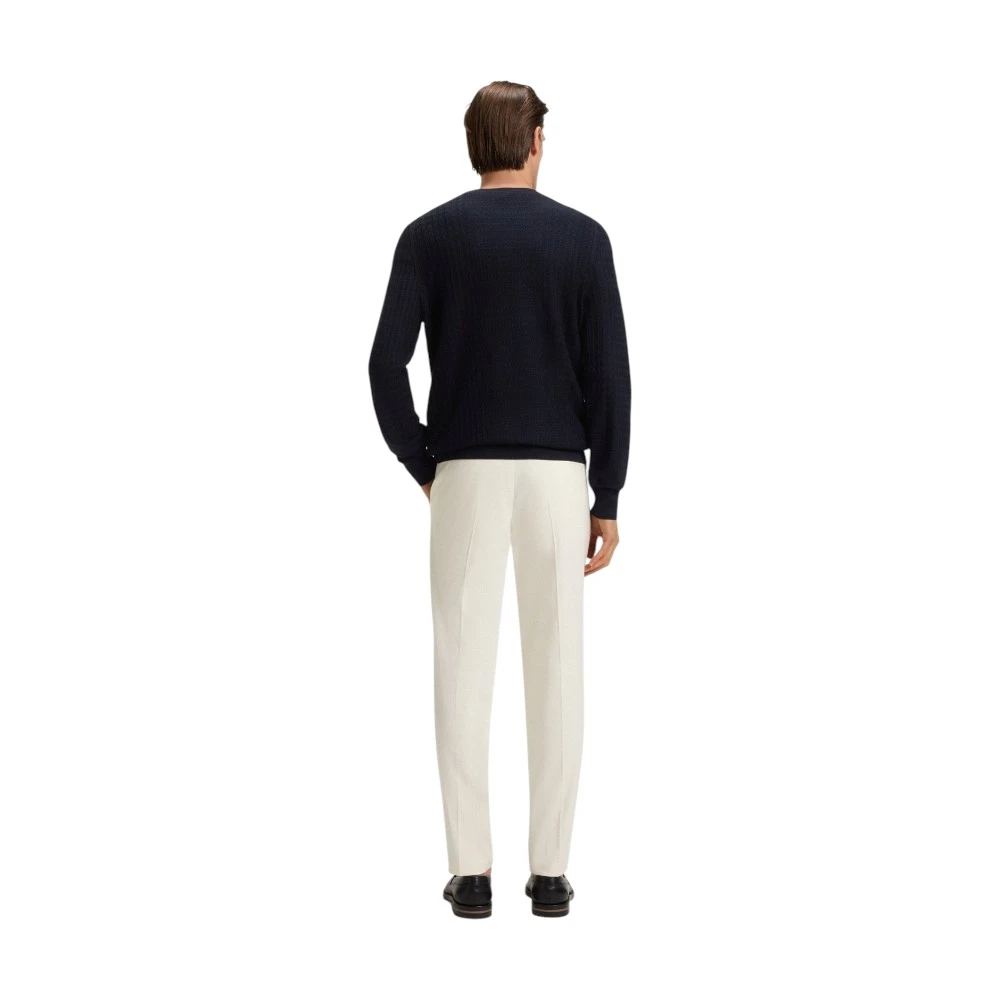 Мужской свитер Boss L-Intenso в синем цвете — элегантная модель премиального качества для мужчин, которые ценят стиль, комфорт и натуральные материалы. Лаконичный дизайн и универсальный крой делают этот свитер отличным выбором как для повседневного гардероба, так и для более сдержанных деловых образов. Глубокий синий оттенок легко сочетается с классическими брюками, джинсами и пиджаками, подчеркивая статус и утончённый вкус владельца.