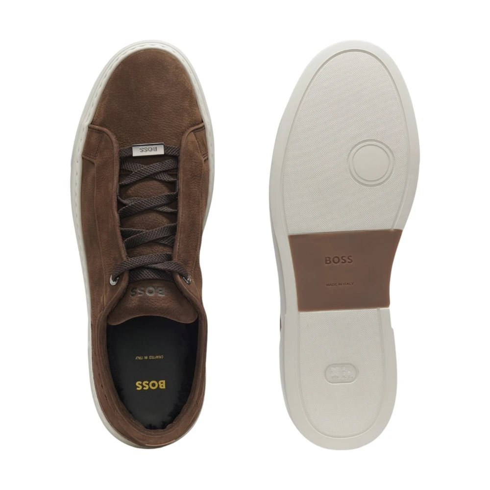 Мужские кроссовки Boss Gary_Tenn_NBPR в коричневом цвете — стильная и универсальная модель для мужчин, которые ценят комфорт, премиальное качество и современный городской стиль. Благородный коричневый оттенок придаёт обуви выразительность и делает её отличным выбором как для повседневных образов, так и для smart casual сочетаний. Кроссовки легко комбинируются с джинсами, брюками, чиносами и спортивной одеждой, создавая уверенный и актуальный образ.