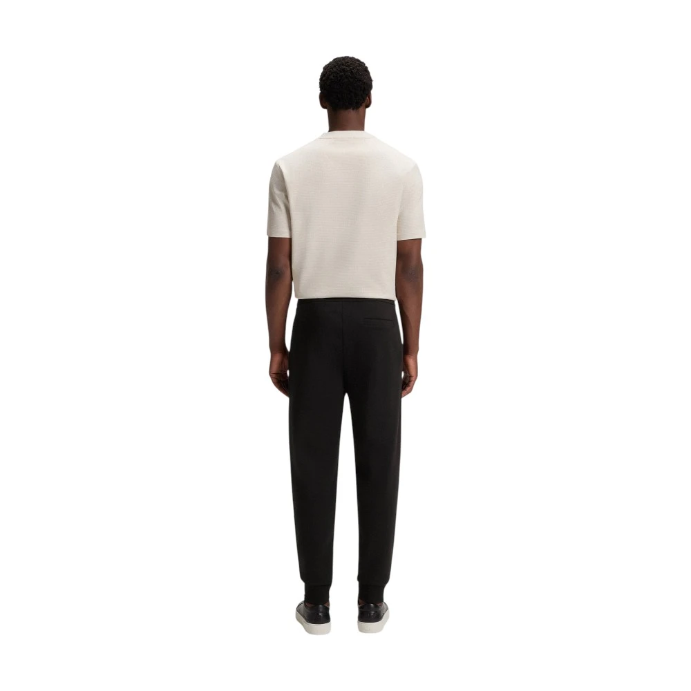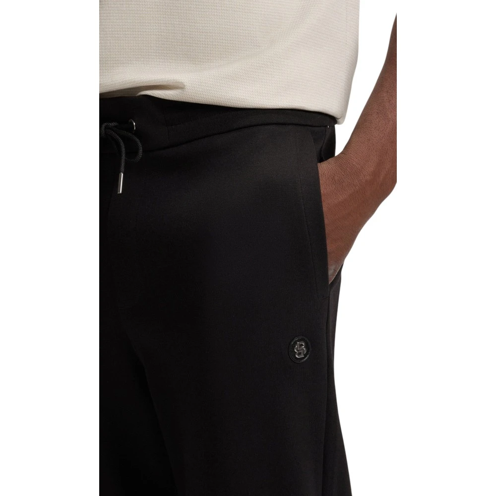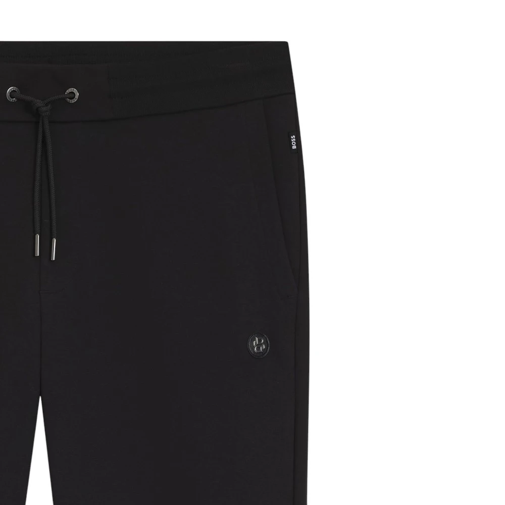 Эластичный пояс с регулируемым шнурком позволяет индивидуально настроить посадку. Манжеты внизу создают аккуратный силуэт и обеспечивают удобство в движении. Практичные боковые карманы позволяют держать под рукой необходимые мелочи, а минималистичный фирменный логотип Boss подчеркивает премиальный статус модели. Зауженный спортивный крой делает образ современным и динамичным.