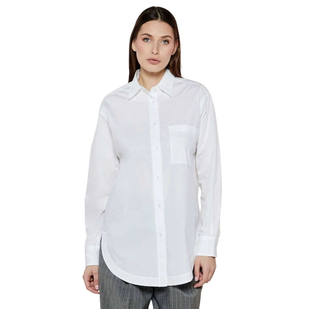 Женская рубашка Boss C_Bostucci_7 в белом цвете — это элегантная и универсальная модель, которая идеально сочетает в себе классический стиль, комфорт и премиальное качество. Белый цвет символизирует чистоту, свежесть и утончённость, делая рубашку базовым элементом гардероба для создания как деловых, так и повседневных образов. Лаконичный дизайн и безупречные линии подчёркивают фирменную эстетику Boss и делают модель актуальной в любом сезоне.