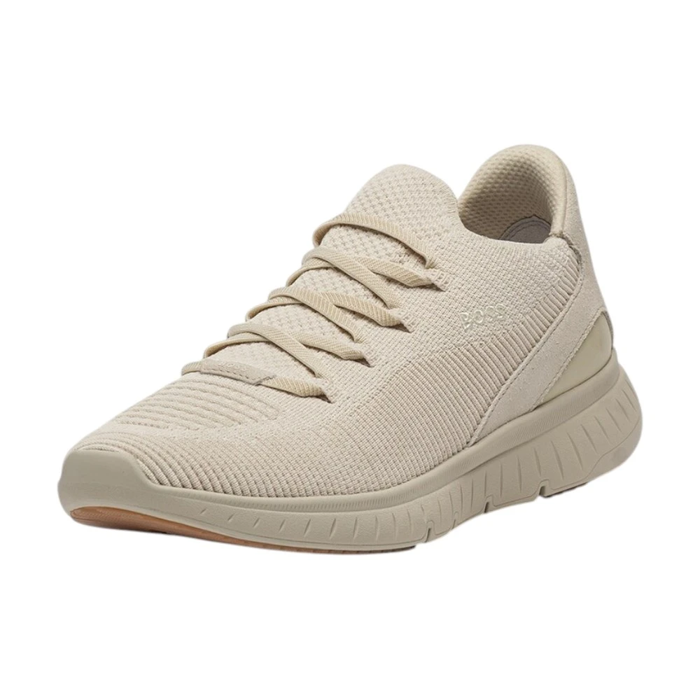 Boss C_TTNM_SLON_KN erkaklar krossovkalari bej rangda zamonaviy sport uslubi, qulaylik va funksionallikni o‘zida mujassam etgan. Ushbu universal model faol hayot tarzi uchun yaratilgan bo‘lib, kundalik kiyish va shahar uslubidagi obrazlar uchun juda mos keladi. Och bej rangi krossovkaga nafis ko‘rinish beradi va jinsi shimlar, sport shimlari, shortilar hamda casual kiyimlar bilan oson uyg‘unlashadi.