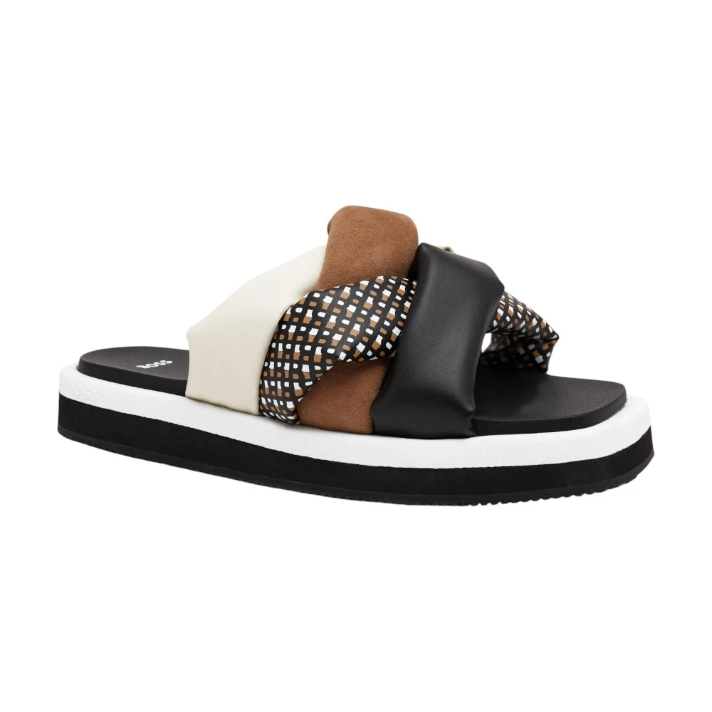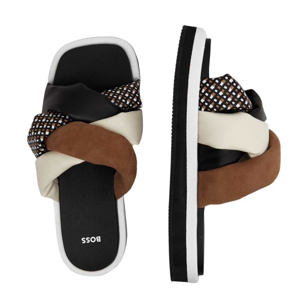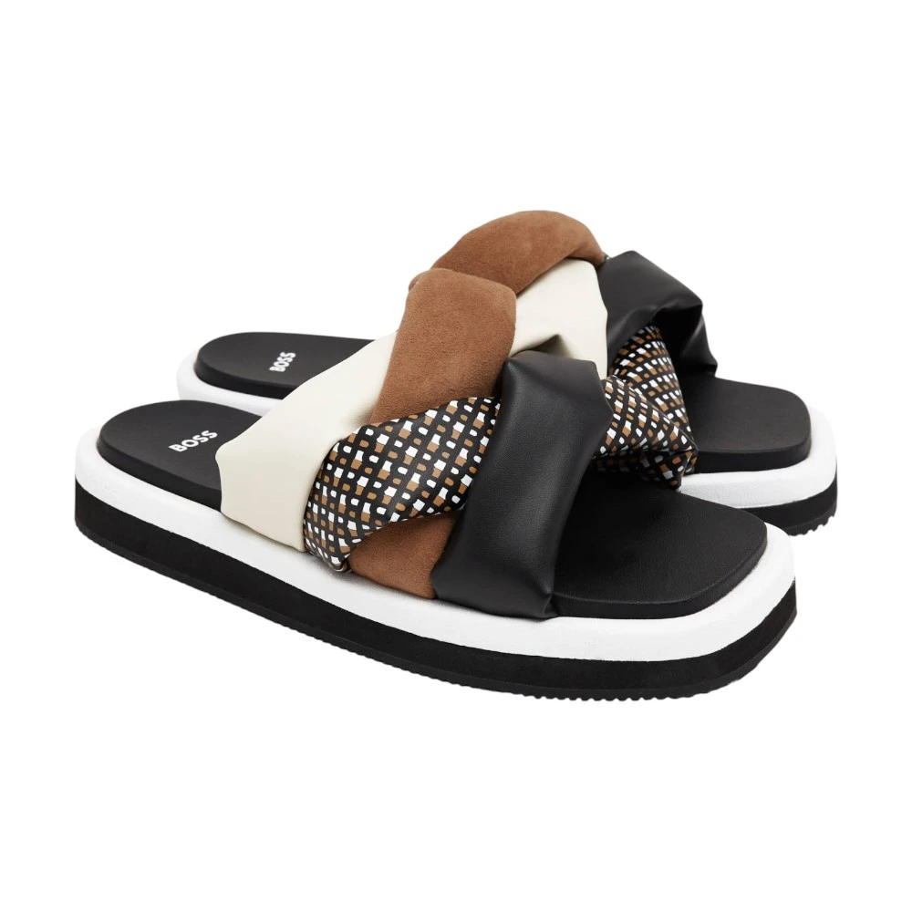 Boss Allie Braid shippaklari — zamonaviy yozgi uslubning nafis ifodasi. Turli fakturadagi uchta keng charm lentaning o‘zaro o‘ralgan dizayni obrazga jozibali aksent beradi. Baland tagcharm esa qulaylik va zamonaviy siluetni ta’minlaydi. Nafis ko‘rinishga urg‘u beruvchi, did bilan yaratilgan model.