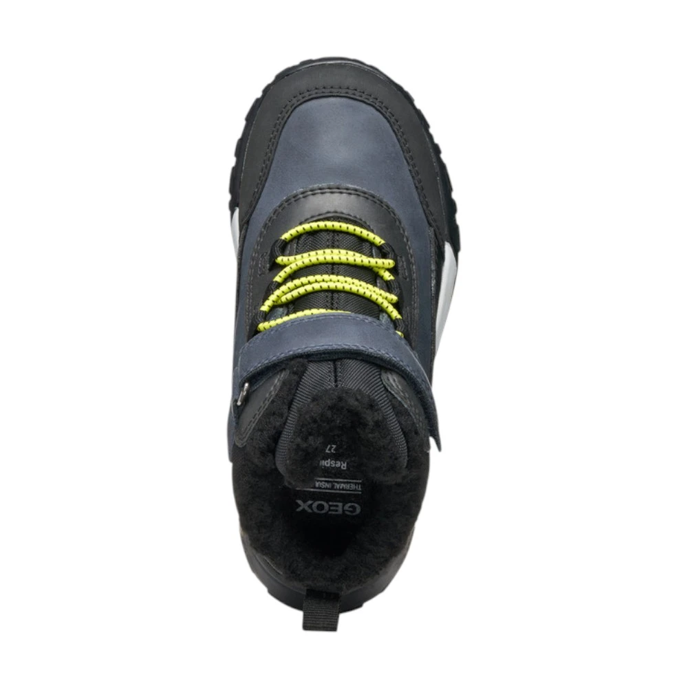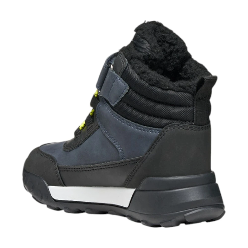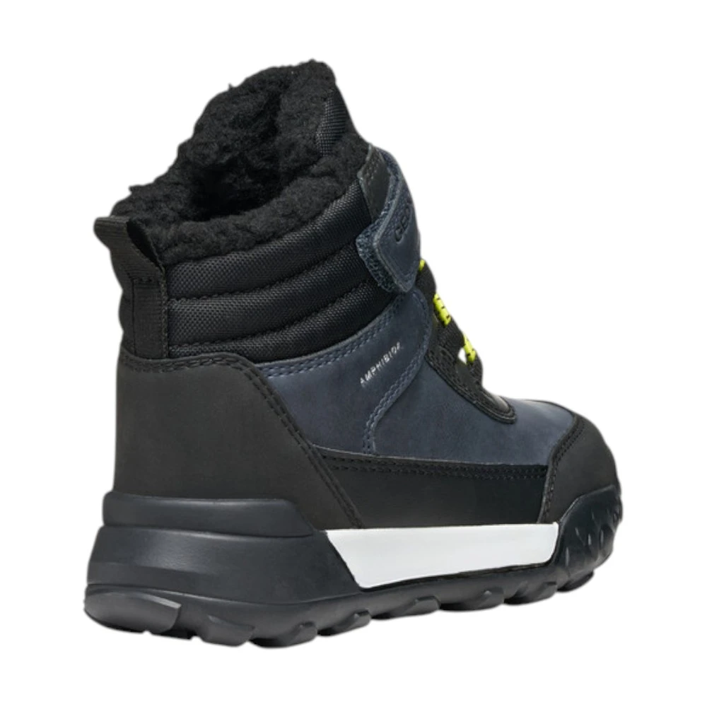 Geox Trekkyup ABX Junior botinkalari — faol o‘g‘il bolalar uchun har qanday ob-havoda ishonchli hamroh. Amphibiox™ texnologiyasi tufayli model suv o‘tkazmaydi va nafas oladi, oyoqlarni hatto kuchli yomg‘irda ham iliq va quruq holda saqlaydi. Iliq ichki qoplama sovuqdan himoya qiladi, mustahkam barmoq va tovon qismi esa faol o‘yinlarda kiyimning chidamliligini oshiradi. Qulay mahkamlagich tufayli botinkalarni kiyish oson, u esa ishonchli yurishni ta’minlaydi. Yomg‘irli sayrlar va qishki sarguzashtlar uchun mukammal tanlov.