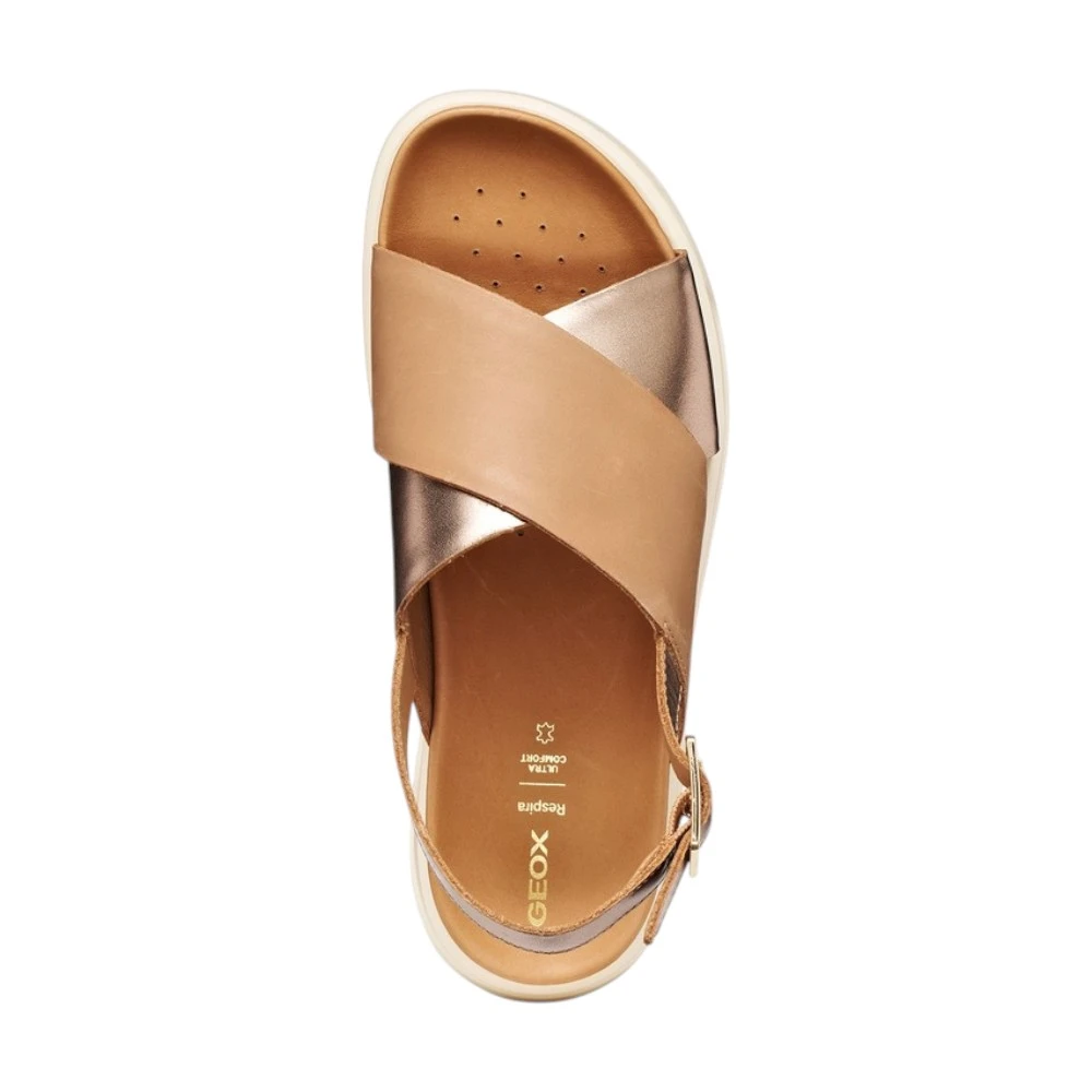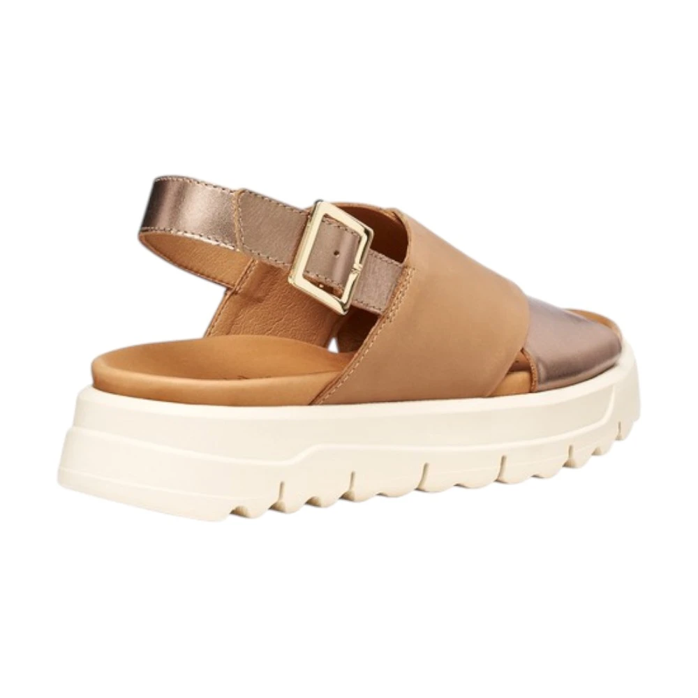 Ayollar uchun Geox Xand 2.1S Woman sandallari kundalik foydalanish uchun mo‘ljallangan qulay va zamonaviy model hisoblanadi. Och jigarrang rang va oltin rangli bezaklar uyg‘unligi poyabzalga iliq va nafis ko‘rinish berib, uni shahar uslubi va kundalik obrazlar bilan oson uyg‘unlashtirish imkonini yaratadi. Sandallarning ustki qismi 100% tabiiy charmdan tayyorlangan bo‘lib, yumshoqligi, mustahkamligi va qulay o‘tirishi bilan ajralib turadi. Oldingi keng tasma oyoqni muloyim tarzda ushlab turadi, kesishgan dizayn esa modelga yengil va ishonchli ko‘rinish beradi. Orqa qismdagi sozlanadigan ilgakli tasma oyoqqa moslashishni ta’minlaydi va yurishda barqarorlik yaratadi. Metallik bezaklar umumiy dizaynga nozik urg‘u qo‘shadi. Yengil, ammo barqaror taglik amortizatsiyani yaxshilaydi va kun davomida oyoqqa tushadigan bosimni kamaytiradi. Geox’ning nafas oluvchi texnologiyasi poyabzal ichida qulay mikroiqlimni saqlashga yordam beradi. Sandallar ko‘ylaklar, yubkalar, shortilar va kundalik shimlar bilan yaxshi mos keladi. Geox Xand 2.1S Woman — sifatli charm sandallarni sotib olishni istaganlar uchun a’lo tanlov. Qulay narx, onlayn buyurtma va mavjud chegirma xaridni yanada jozibador qiladi.