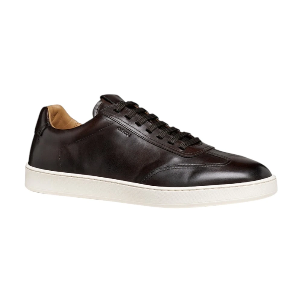 Geox Regio — kundalik qulaylik va sokin nafislikni qadrlaydigan erkaklar uchun mo‘ljallangan charm krossovkalar. To‘q jigarrang rang, minimalistik dizayn va aniq proporsiyalar modelni shahar uslubi uchun universal tanlovga aylantiradi.