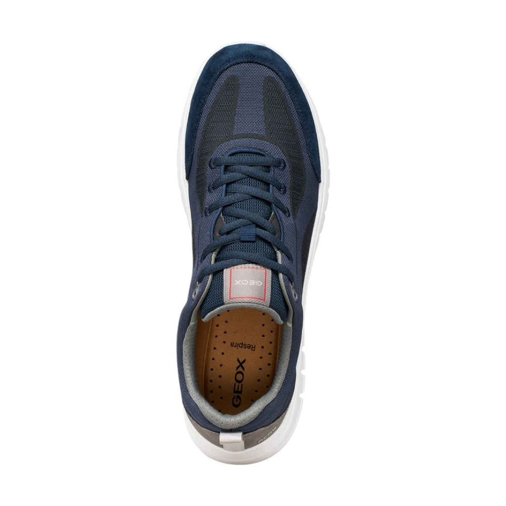 Yuqori qismi poliester, zamsha va poliuretan materiallari kombinatsiyasidan tayyorlangan. Bu yechim krossovkalarga mustahkamlik, chiroyli ko‘rinish va qulay moslashuvchanlik beradi. Geox’ning nafas oluvchi texnologiyasi oyoq ichida qulay muhitni saqlashga yordam beradi va kun davomida o‘zini yengil his qilish imkonini yaratadi.
