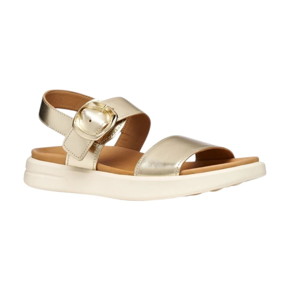 Ayollar uchun Geox Xand 2S Woman sandallari kundalik foydalanish uchun mo‘ljallangan nafis va qulay model hisoblanadi. Oltin rang poyabzalga yorqin, ammo muvozanatli urg‘u berib, uni shahar uslubi va saranjom casual obrazlar bilan oson uyg‘unlashtirish imkonini yaratadi. Sandallarning ustki qismi 100% tabiiy charmdan tayyorlangan bo‘lib, yumshoqligi, mustahkamligi va oyoq shakliga moslashish xususiyati bilan ajralib turadi. Oldingi keng tasma oyoqni ishonchli ushlab turadi, orqa qismdagi sozlanadigan ilgakli tasma esa individual qulaylikni ta’minlaydi. Katta metall ilgak model dizayniga zamonaviy urg‘u qo‘shadi. Yengil va amortizatsiyaga ega taglik yurishda qulaylik yaratib, kun davomida oyoqqa tushadigan bosimni kamaytiradi. Geox’ning nafas oluvchi texnologiyasi poyabzal ichida havo aylanishini qo‘llab-quvvatlab, uzoq vaqt davomida ham qulay mikroiqlimni saqlaydi. Sandallar ko‘ylaklar, yubkalar, shimlar va kundalik kiyimlar bilan yaxshi mos keladi. Geox Xand 2S Woman — sifatli charm sandallarni sotib olishni istaganlar uchun to‘g‘ri tanlov. Qulay narx, onlayn buyurtma va mavjud chegirma xaridni yanada jozibador qiladi.