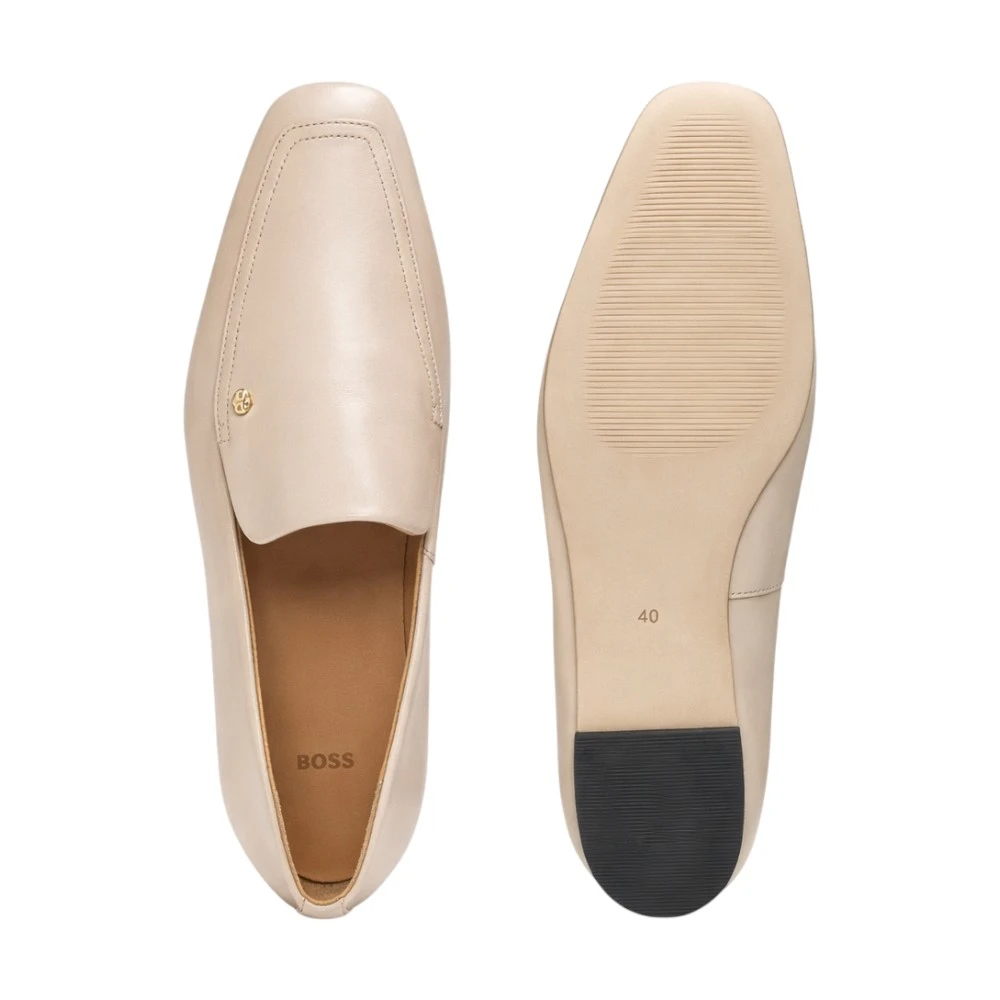 Boss Charlize ayollar lofyerlari bej rangda — kundalik va klassik garderob uchun mos, qulay va muvozanatli model. Soddaligi va toza shakli tufayli ushbu lofyerlar ish kunlari, shahar sayrlari yoki sokin obrazlar uchun juda qulay. Dizayn ortiqcha detallarsiz bajarilgan bo‘lib, u universal ko‘rinishni ta’minlaydi.