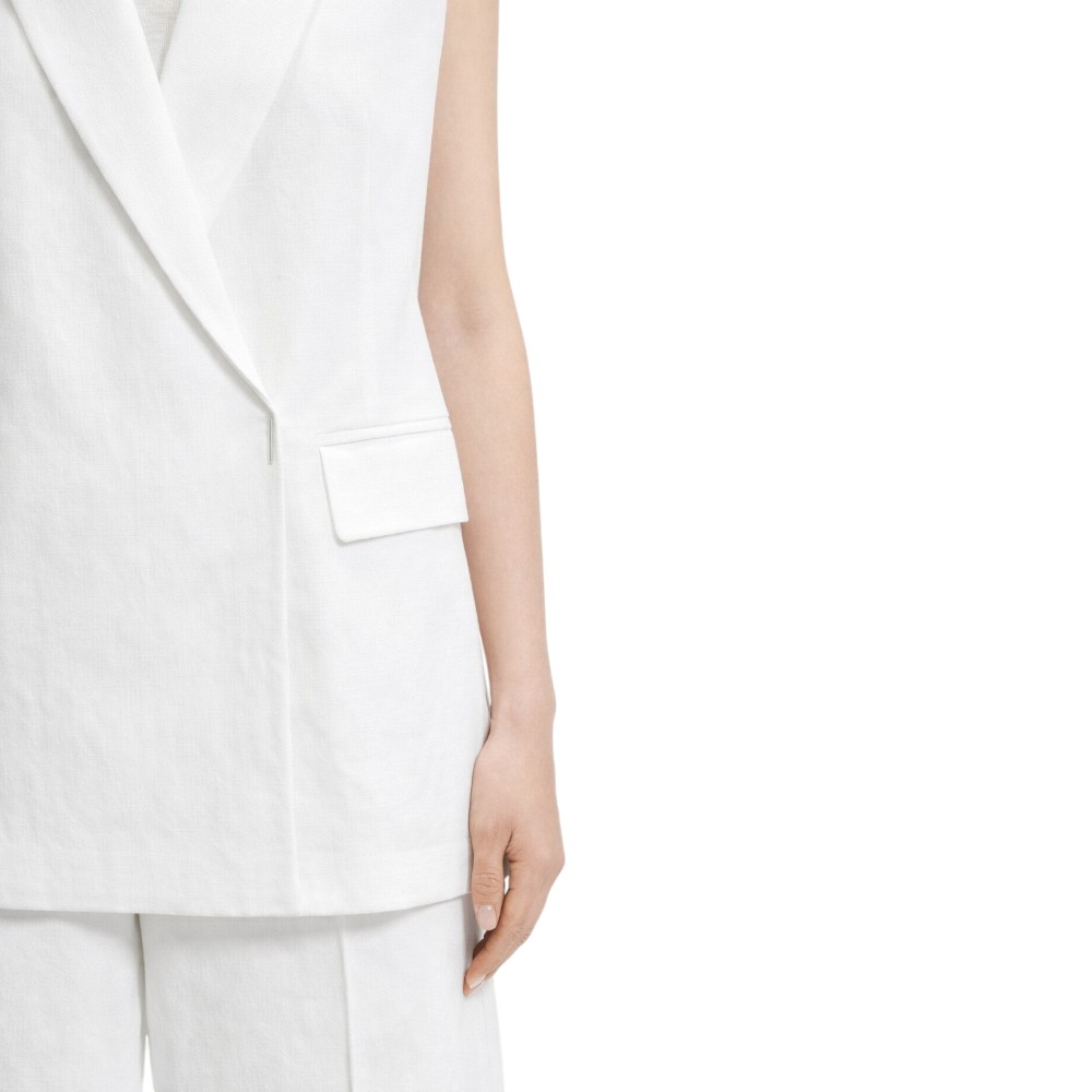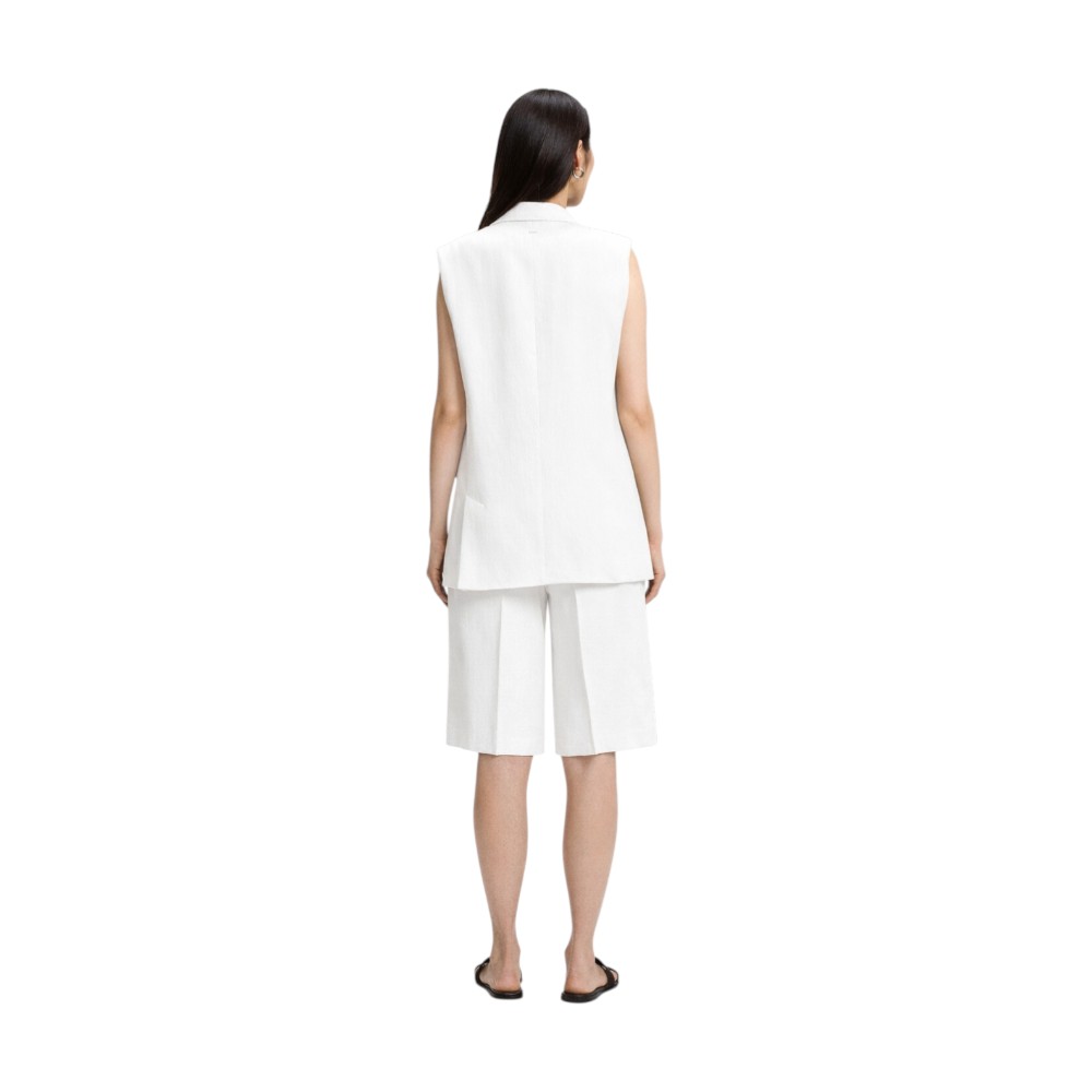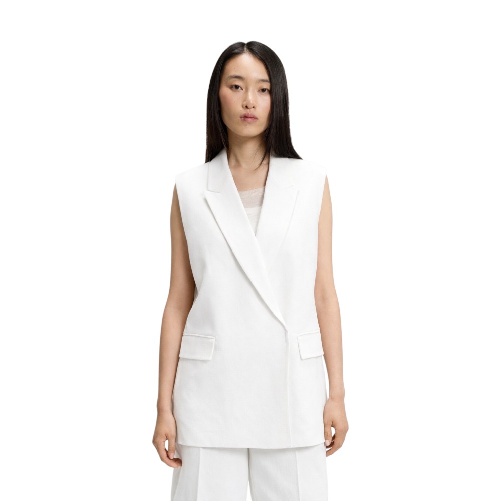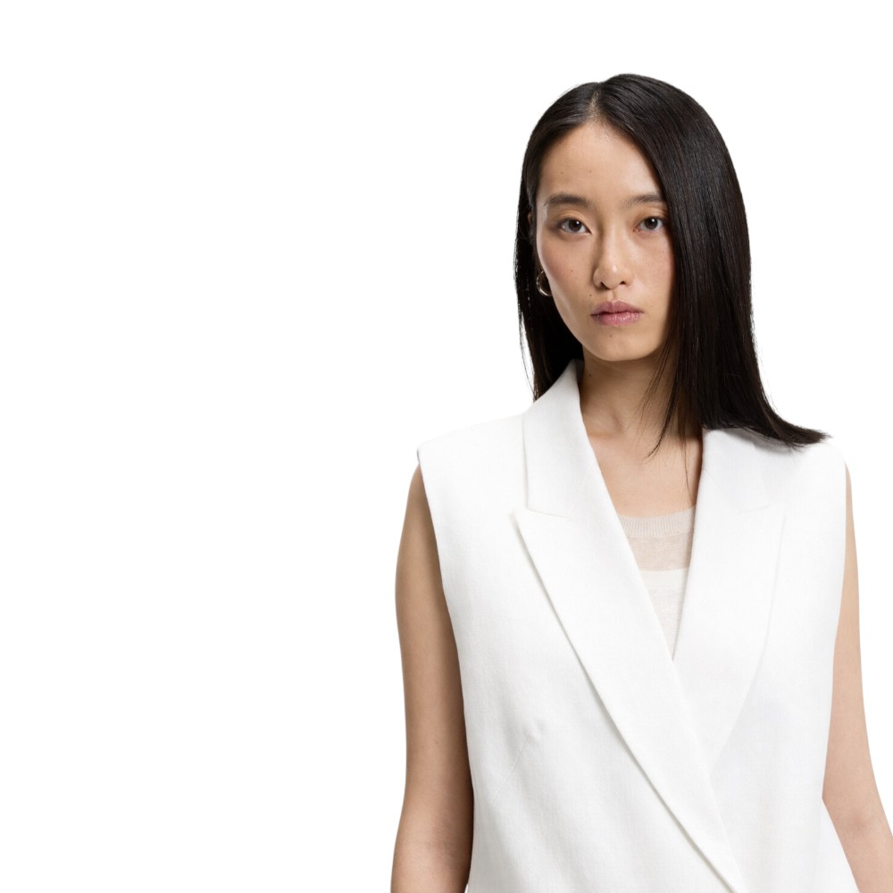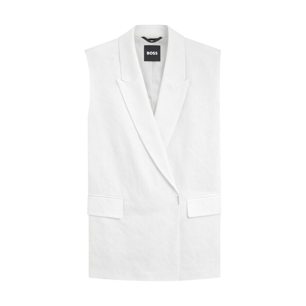 Ayollar uchun Boss Jankania oq jileti zamonaviy nafislik va mukammal bichim timsolidir. Model 67% zig‘ir va 33% viskozadan iborat yuqori sifatli aralash matodan tayyorlangan. Zig‘irning tabiiy teksturasi viskozaning yumshoqligi va plastiklik xususiyatlari bilan uyg‘unlashib, yengillik va havo o‘tkazuvchanlikni ta’minlaydi. Bu jiletni issiq mavsum uchun ideal tanlovga aylantiradi.