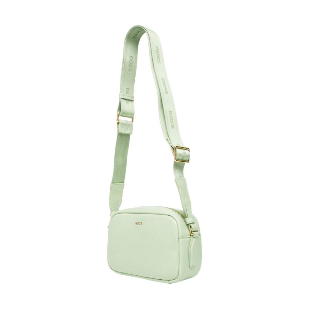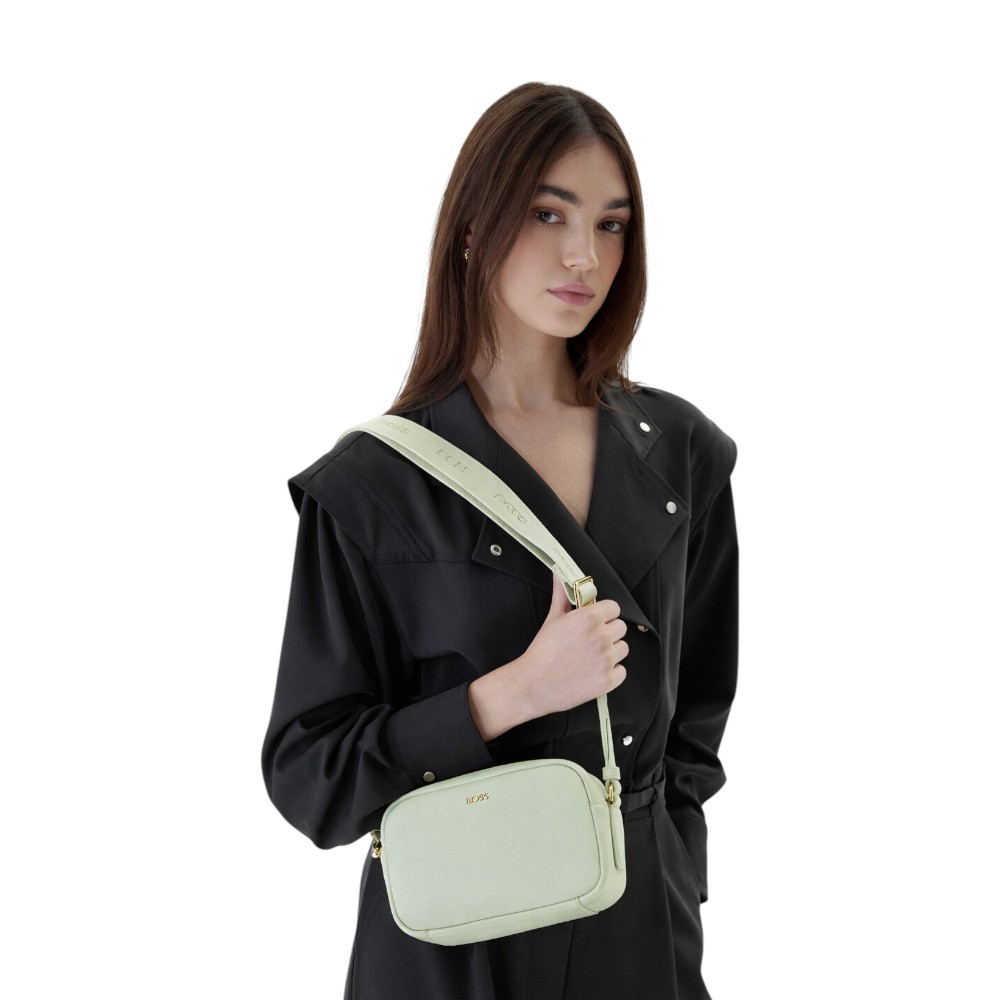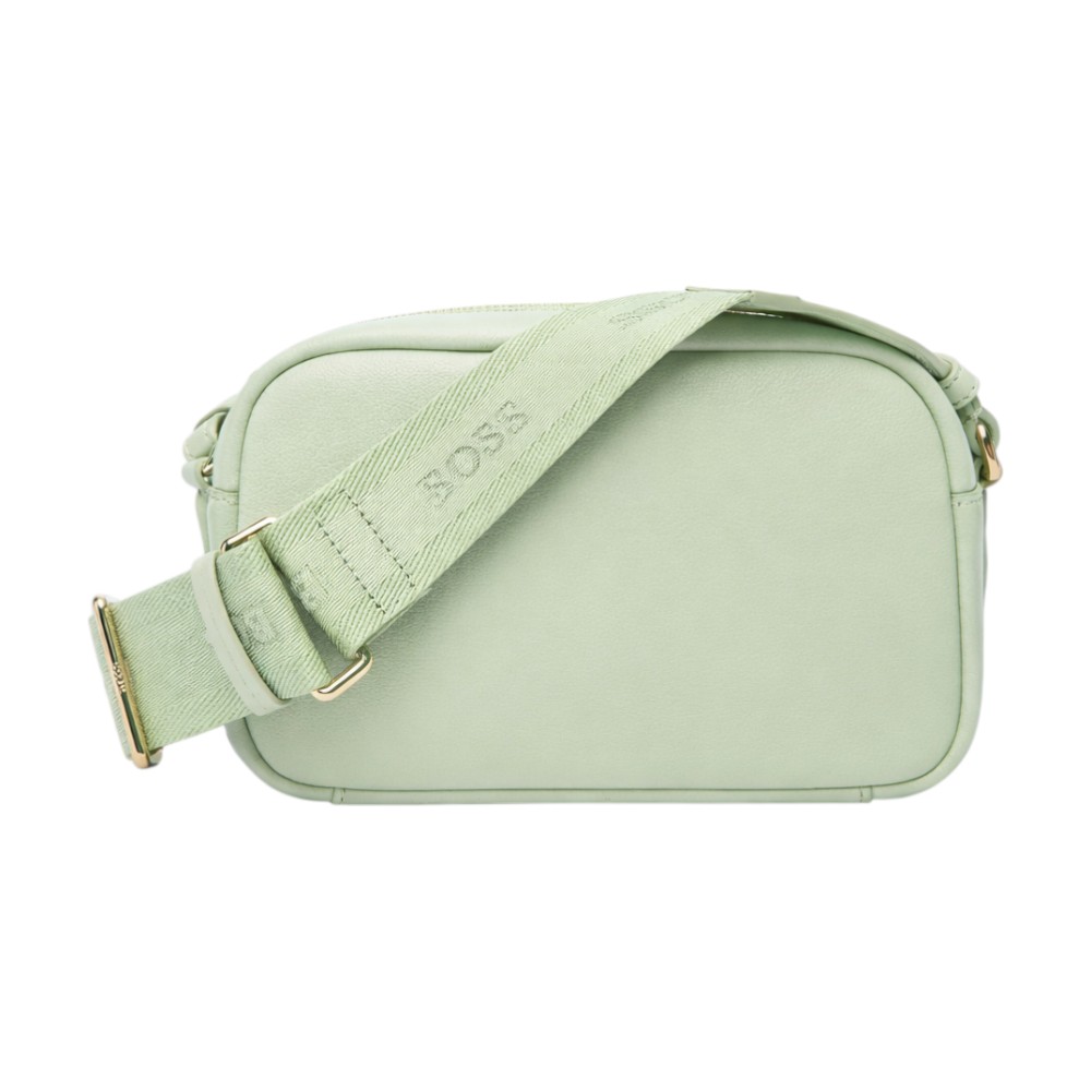 Ayollar uchun Boss Sandy Crossbody nozik minta rangdagi sumka zamonaviy shahar hayoti uchun ideal aksessuardir. Minimalistik to‘rtburchak shakl Boss brendining uslubini aks ettiradi, pastel-yashil rang esa obrazga yengillik va yangilik bag‘ishlaydi. Model kundalik neytral kiyimlar hamda mavsumiy yorqin ranglar bilan uyg‘unlashadi.