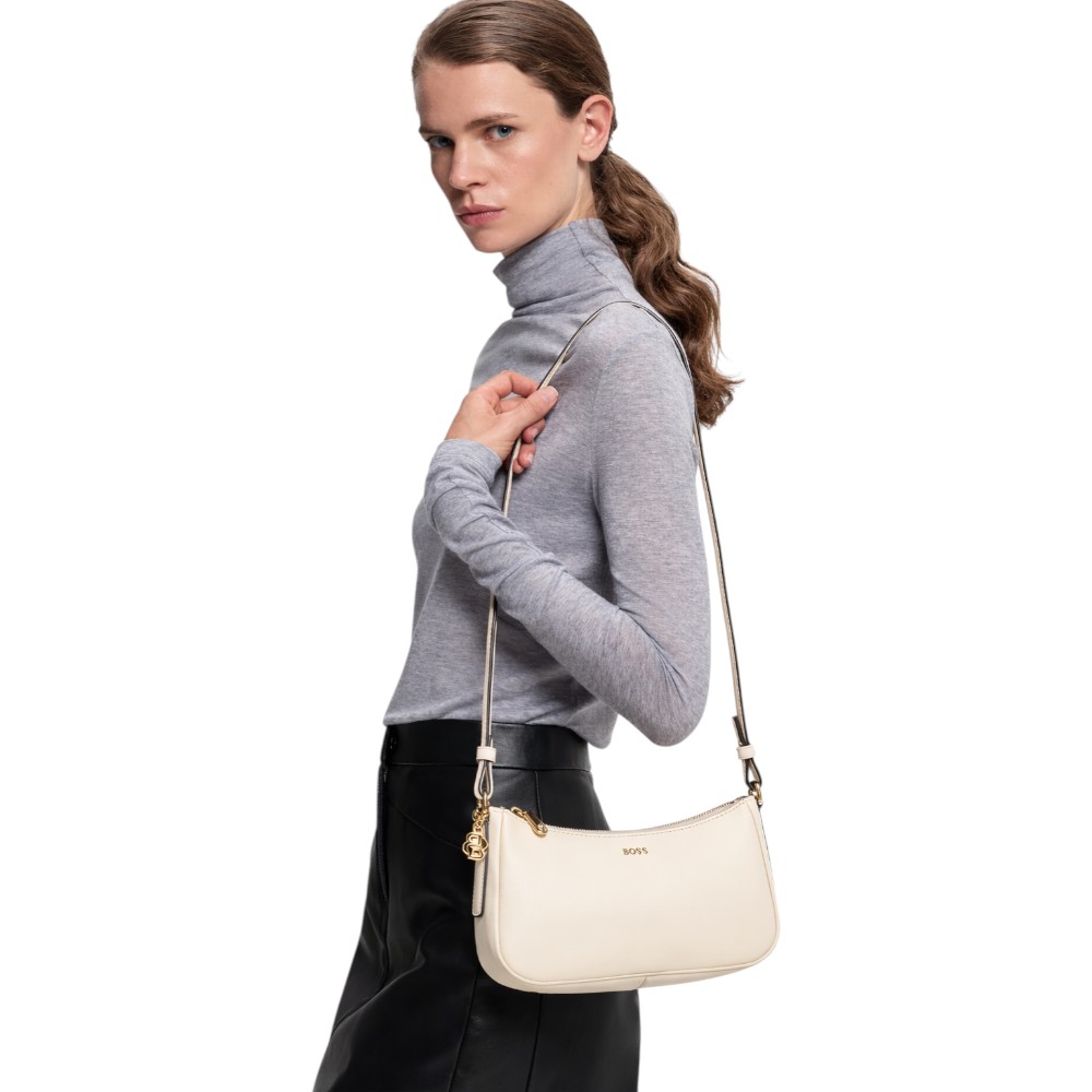 Ichki qismi telefon, kalit, karta va kosmetik buyumlar uchun yetarli joyga ega. Old qismdagi lakonik Boss logotipi modelning nafisligini yakunlaydi.