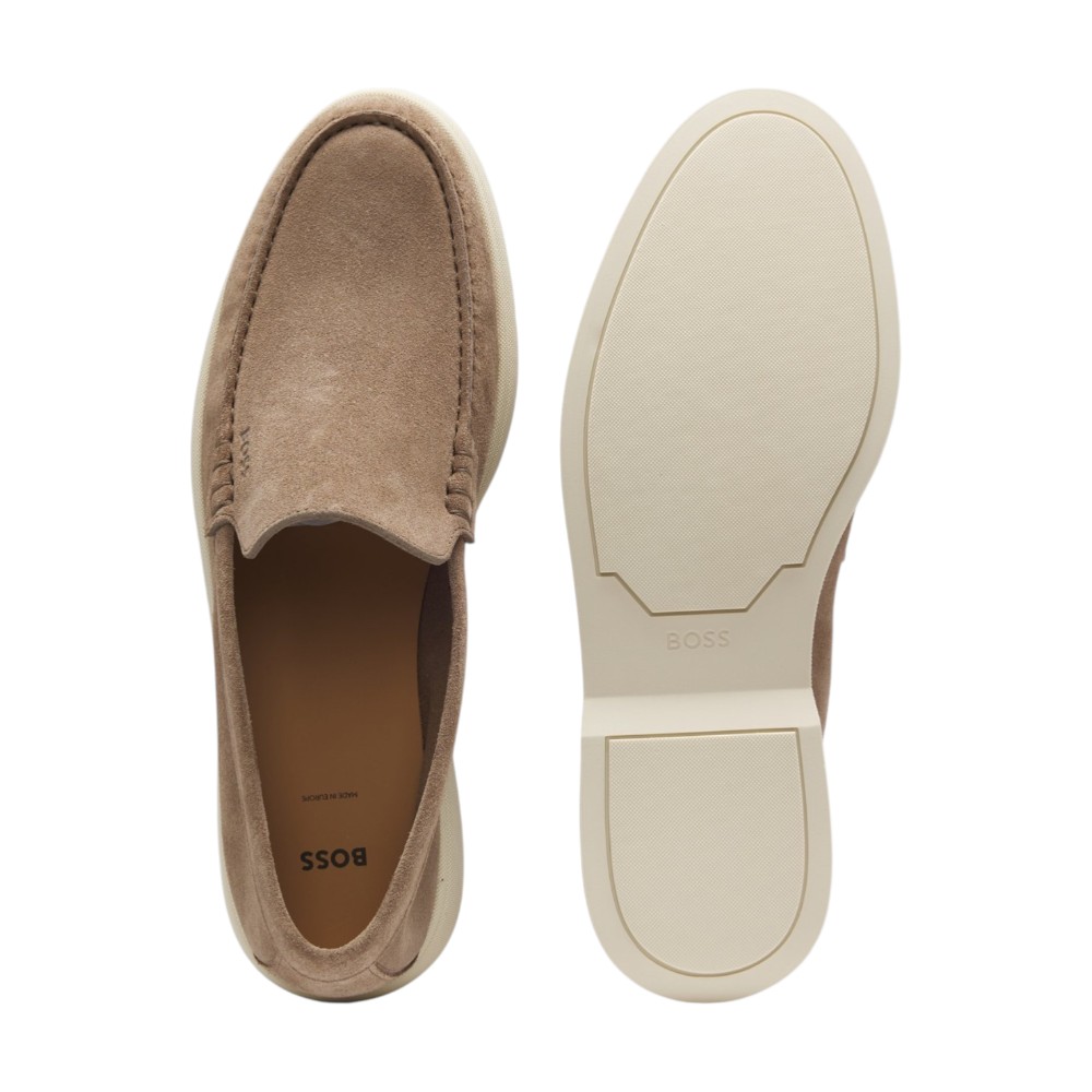 Erkaklar uchun Boss Sienne to‘q bej rangdagi loaferlar kundalik nafislikning zamonaviy talqinidir. Model tabiiy zamshdan tayyorlangan bo‘lib, uning mayin mat teksturasi rangning chuqurligini ochib beradi va poyabzalga jozibali ko‘rinish bag‘ishlaydi. Issiq to‘q bej rang bahor va yoz mavsumlari uchun ayniqsa mos bo‘lib, smart casual uslubidagi obrazlarni mukammal to‘ldiradi.