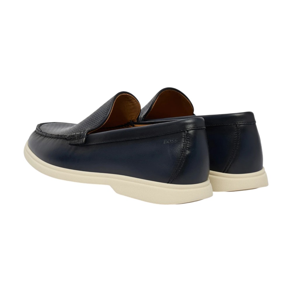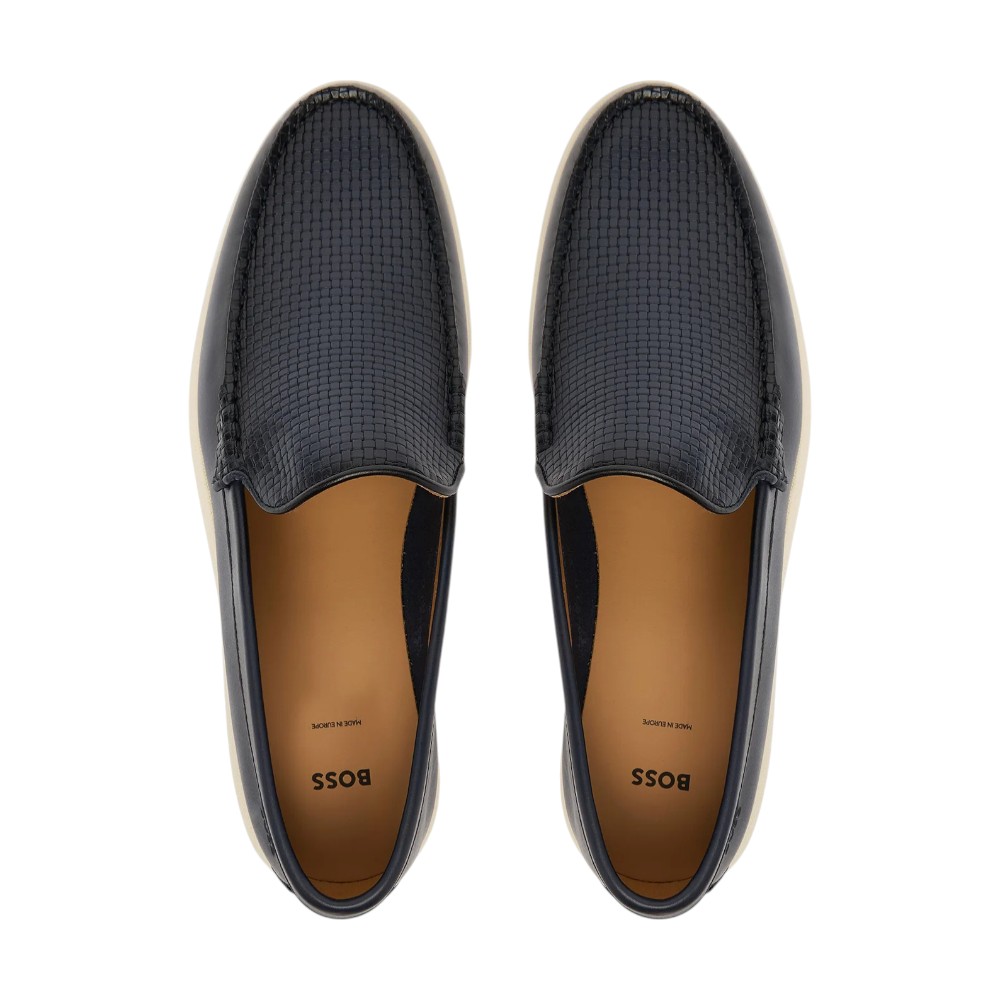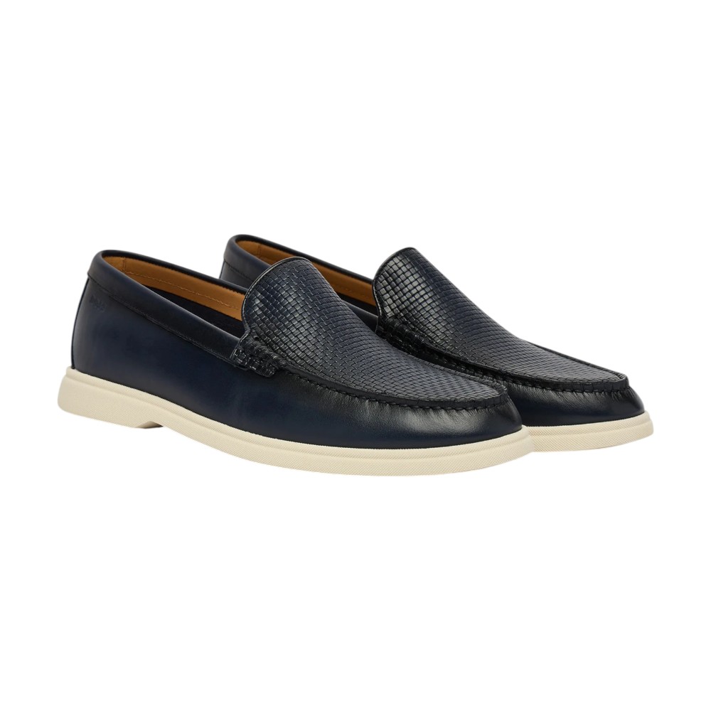 Erkaklar uchun Boss Sienne Loaf to‘q ko‘k rangdagi loferlar klassik shakl va zamonaviy minimalizmning nafis uyg‘unligidir. Model tabiiy teridan tayyorlangan bo‘lib, ustki qismidagi fakturali to‘qima dizaynga o‘ziga xos ifoda va premium ko‘rinish beradi. Chuqur to‘q ko‘k rang poyabzalni universal qiladi: u klassik kostyumlar bilan ham, smart casual uslubidagi obrazlar bilan ham mukammal uyg‘unlashadi.