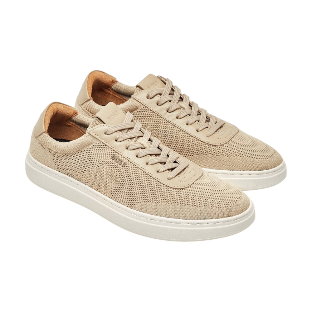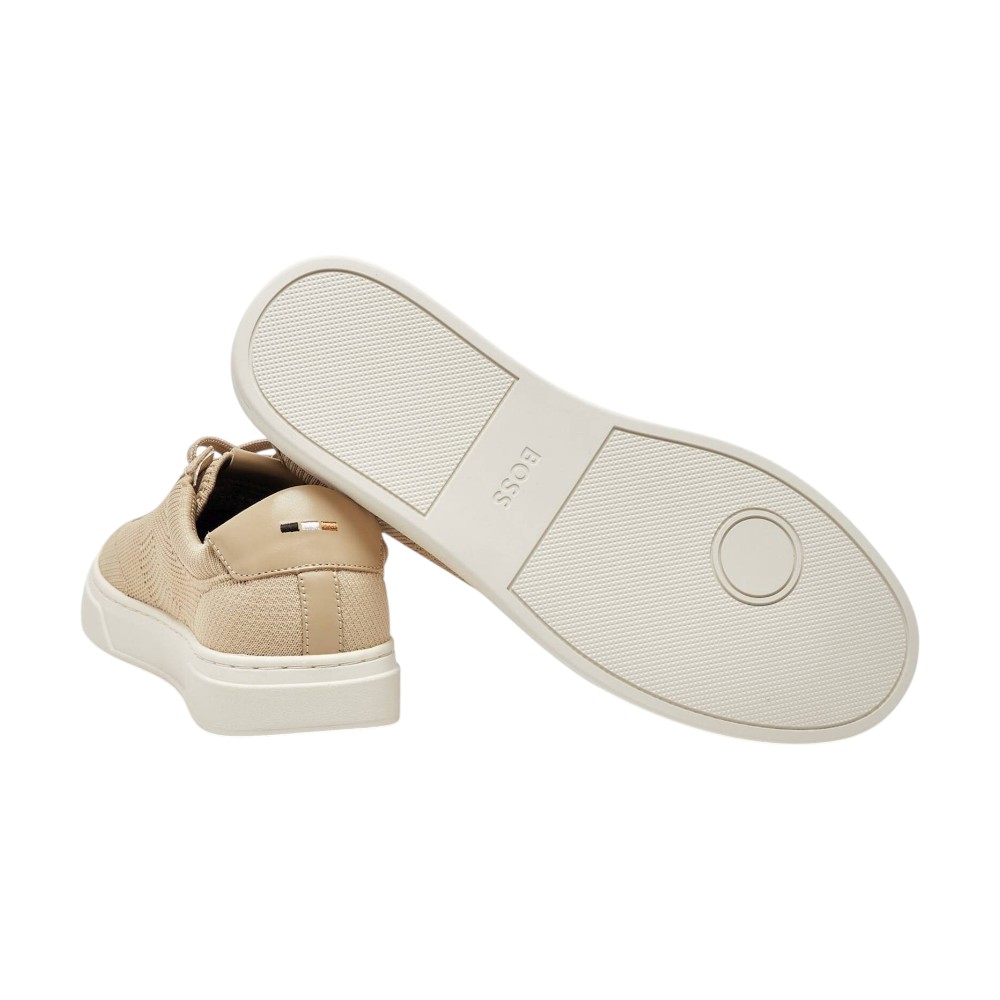 BOSS Kieran Tenn — zamonaviy va nafis erkaklar krossovkalari bo‘lib, kundalik shahar hayoti uchun mo‘ljallangan. Model bej rangda ishlangan va Boss brendining premium uslubini zamonaviy texnologiyalar bilan uyg‘unlashtiradi. Yuqori qismi 85% poliester va 15% termoplastik elastomerdan tayyorlangan bo‘lib, mustahkamlik, yengillik va uzoq muddatli xizmatni ta’minlaydi. To‘qima tuzilishi havo aylanishini yaxshilaydi, moslashuvchan taglik esa kun davomida qulaylik beradi.