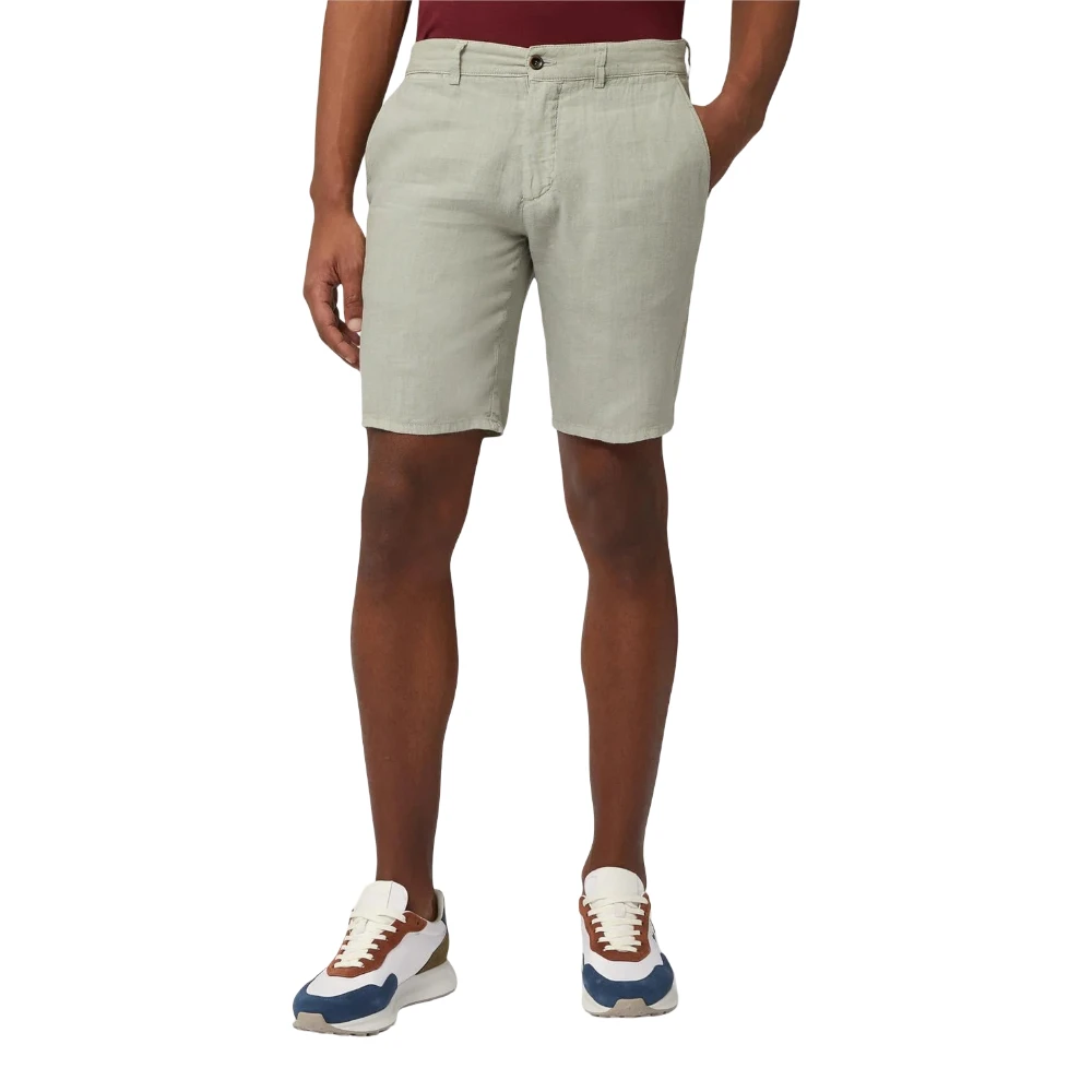 Erkaklar uchun Harmont & Blaine Regular Fit Linen Bermuda shortilari och yashil rangda bo‘lib, yoz mavsumi uchun mukammal tanlovdir. Model 100% tabiiy zig‘irdan tayyorlangan bo‘lib, yuqori darajadagi havo o‘tkazuvchanlikni ta’minlaydi va issiq havoda ham qulaylik beradi. Zig‘ir matosi tana bo‘ylab yengil yotadi va kun davomida erkin harakatlanishni ta’minlaydi.