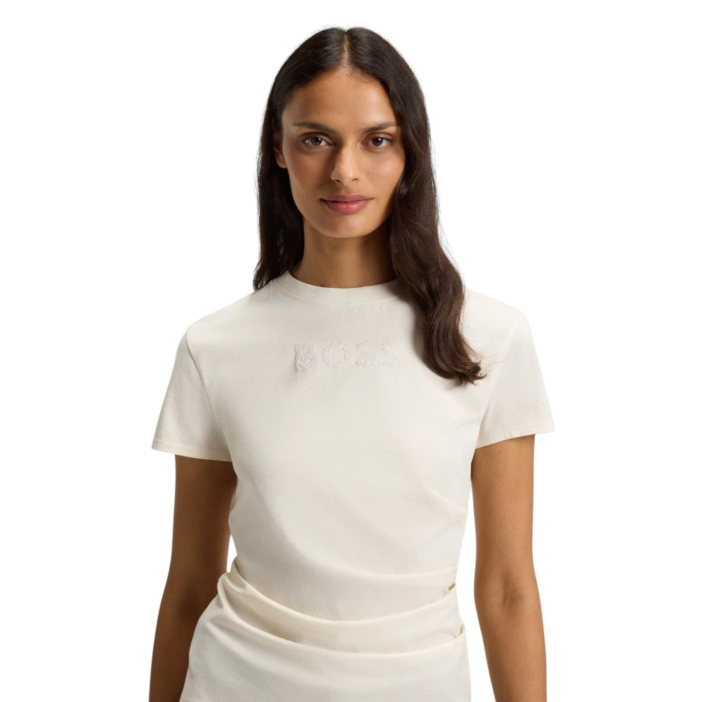 Ayollar futbolkasi Boss Epka_1 och bej rangda — zamonaviy ayollar garderobi uchun universal va nafis modeldir. Nozik och bej tus obrazga yengillik, yumshoqlik va nafislik baxsh etadi, futbolkani kundalik foydalanish, dam olish, sayr va casual uslub uchun ideal tanlovga aylantiradi. Lakonik dizayn uni turli kiyimlar bilan oson uyg‘unlashtirish imkonini beradi.