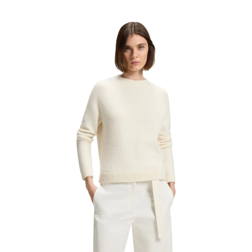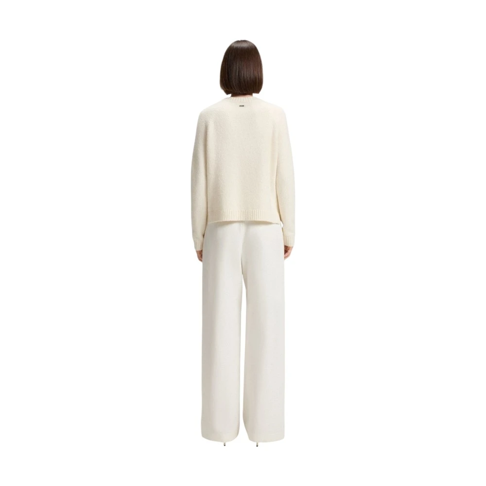 Boss Febisan oq rangli ayollar sviteri — yengillik, nafislik va zamonaviy uslubning uyg‘unligidir. Och rang obrazga tozalik va yengillik bag‘ishlaydi, yumshoq fakturali va mayin tukli mato esa qulaylik va iliqlik hissini beradi. Ushbu model kundalik hamda nafis obrazlar uchun universal garderob asosi bo‘la oladi.