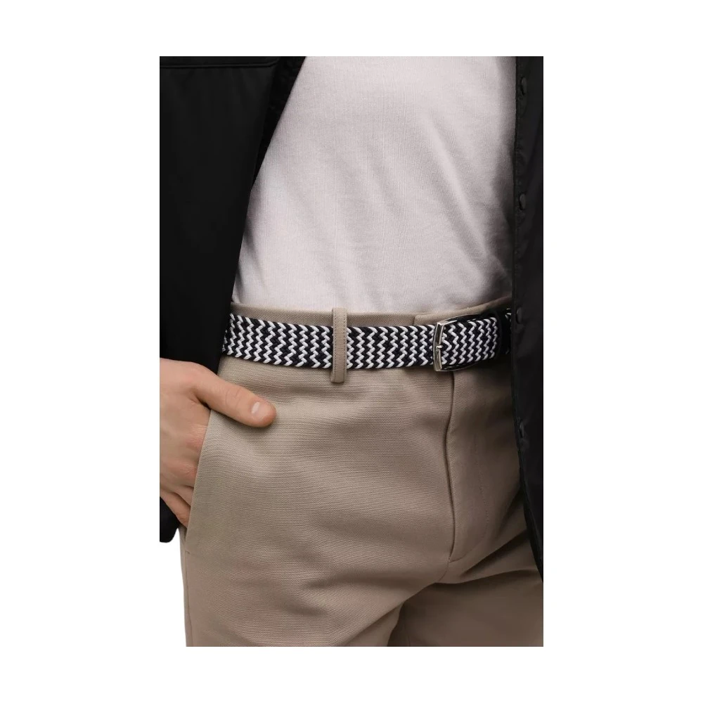 Paul & Shark Kamari — sifat va detallarga qadrlovchi erkaklar uchun stilizatsiya qilingan aksessuar. Qora-ko'k va oq rezina shnurdan to'qilgan, bu kamar ritmik zigzag shaklini yaratadi, bu esa obrazga dinamiklik qo'shadi. Kumush rangli polirovka qilingan prajka va yumshoq mato teridan tayyorlangan qo'shimchalar, brendning bosma logotipi bilan, noziklikni ta'kidlaydi. Uzunligi sozlanishi va harakatlanuvchi tasmali, u mukammal tarzda o'rnashadi va osonlik bilan mustahkamlanadi. Ushbu kamar sizning garderobingizdagi nozik va funksional aksessuar bo'ladi.