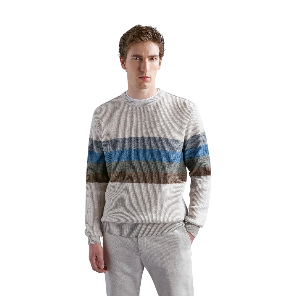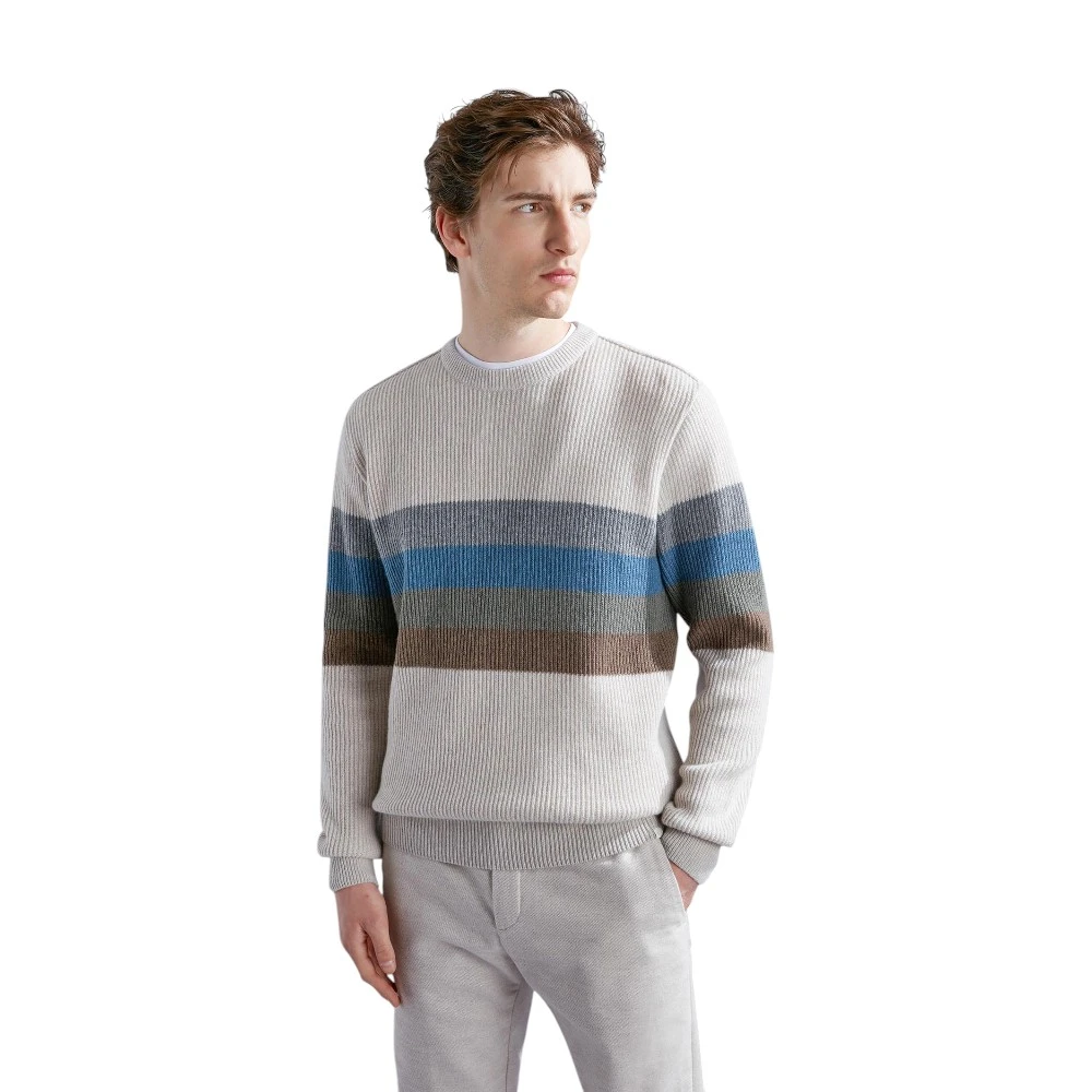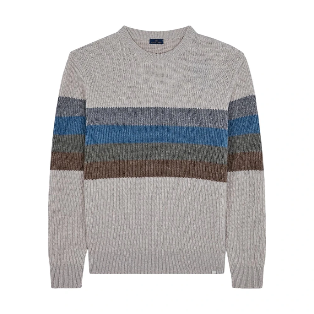 Erkaklar uchun Paul & Shark Men's Knitted Roundneck C.W. Wool sviteri kulrang rangda — premium trikotajning nafis talqini bo‘lib, unda sokin baza va yorqin rang aksentlari uyg‘unlashgan. Kulrang, moviy va jigarrang kontrast chiziqlar modelga chuqurlik va xarakter bag‘ishlab, uni zamonaviy garderobning ajralib turuvchi qismiga aylantiradi.