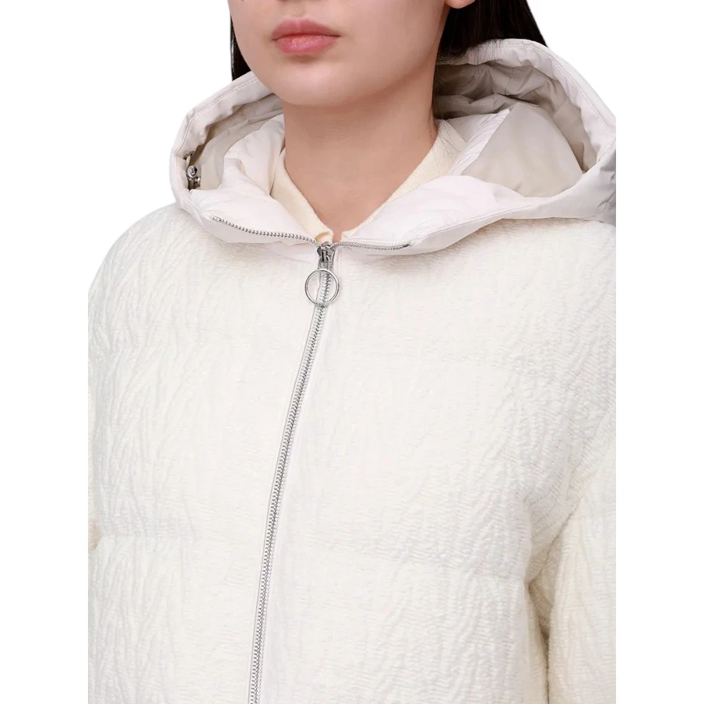 Dizayn gibrid konsepsiyaga asoslangan: kardigan darajasidagi qulaylik yengil kurtkaning amaliy xususiyatlari bilan birlashtirilgan. Yuqori qismi geometrik bukle to‘qimasi bilan ishlangan bo‘lib, modelga nafis tekstura va zamonaviy ko‘rinish beradi. Pastki qismi va kapyushon esa Typhoon Platinum texnologik matosidan tayyorlangan bo‘lib, u yengillik, mustahkamlik va himoya xususiyatlariga ega.