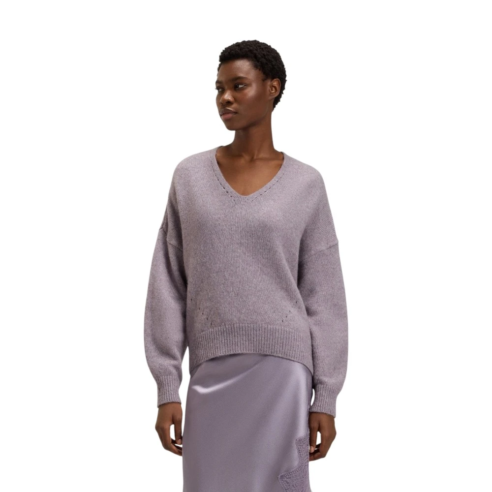 Ayollar uchun Boss C_Fondyssa mayin binafsha rangdagi sviteri — qulaylik, nafislik va zamonaviy elegansiyaning uyg‘unlashuvidir. Chuqur V-shaklli yoqa va erkin siluet modelga yengil hamda beparvo ko‘rinish beradi, u kundalik va smart casual garderobga mukammal mos keladi. Nozik liloviy rang obrazga nafislik bag‘ishlaydi va yubka, shim, jinsi hamda klassik pidjaklar bilan oson uyg‘unlashadi.