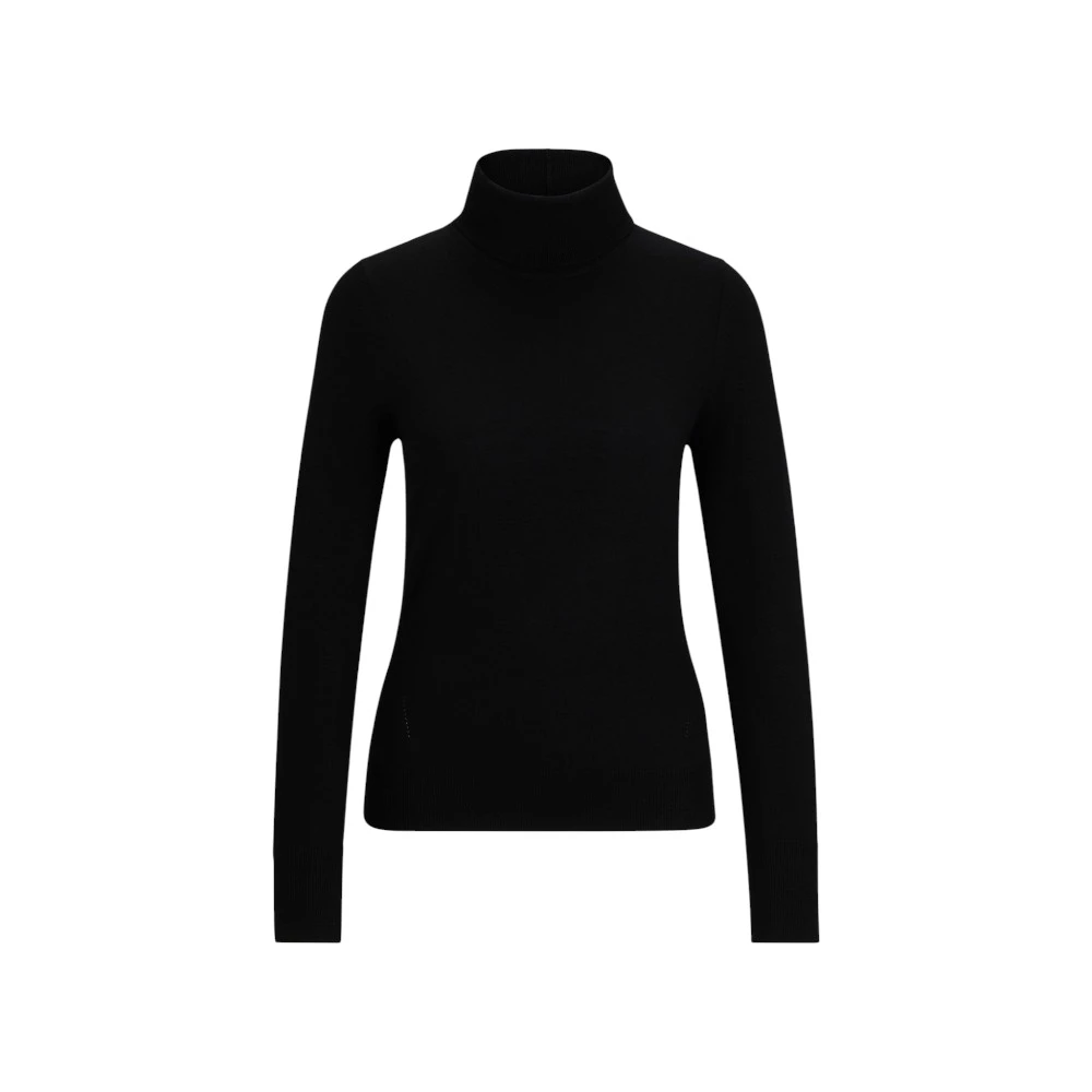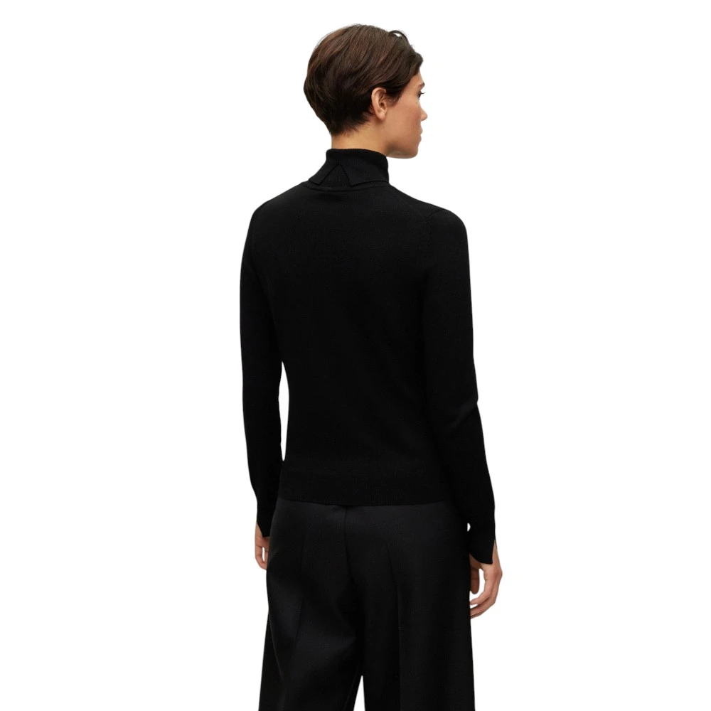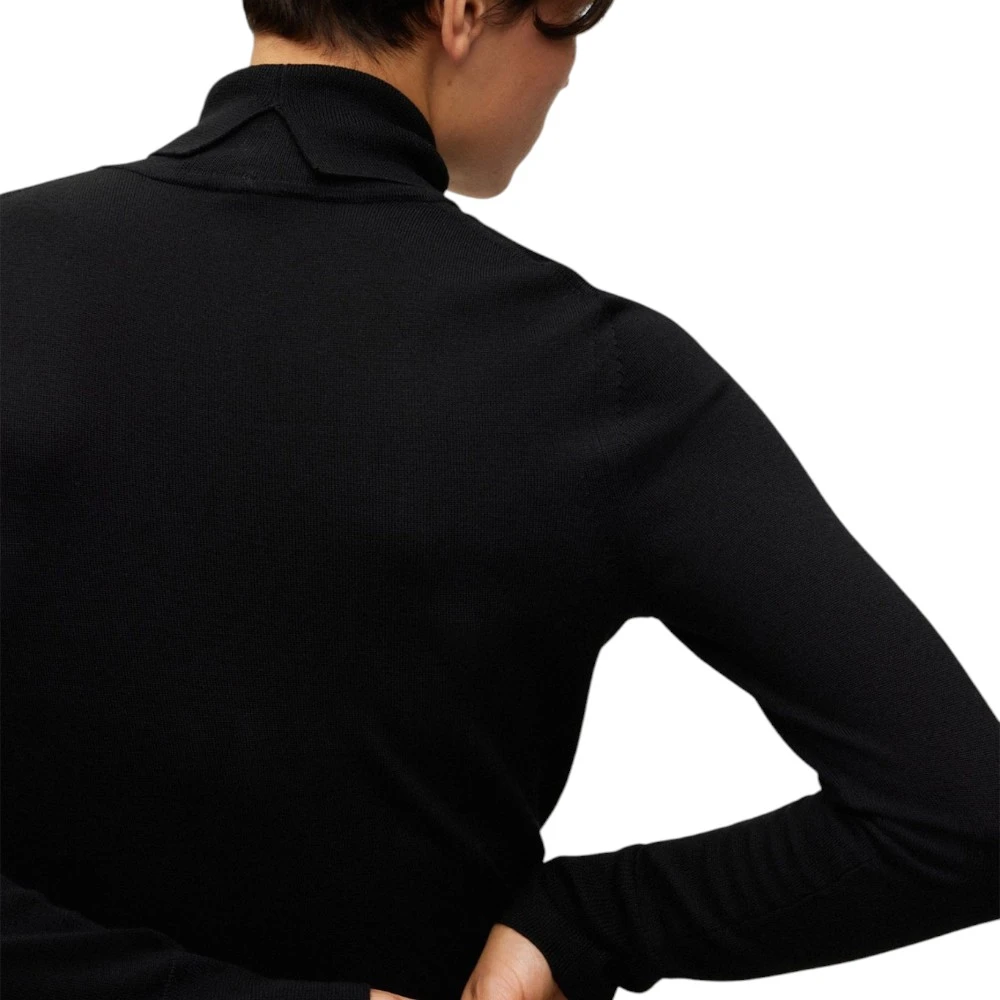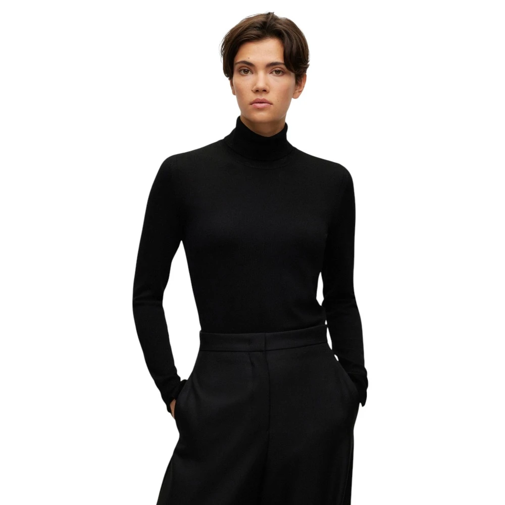 Ayollar uchun Boss Fasecta sviteri — zamonaviy garderob uchun mos, nafis va universal model. Qora rang unga soddalik va elegans bag‘ishlab, kundalik hamda klassik obrazlar bilan oson uyg‘unlashadi. Sviter shimlar, yubkalar va jinsi bilan mukammal mos kelib, shaxsiy uslubni ta’kidlaydi.