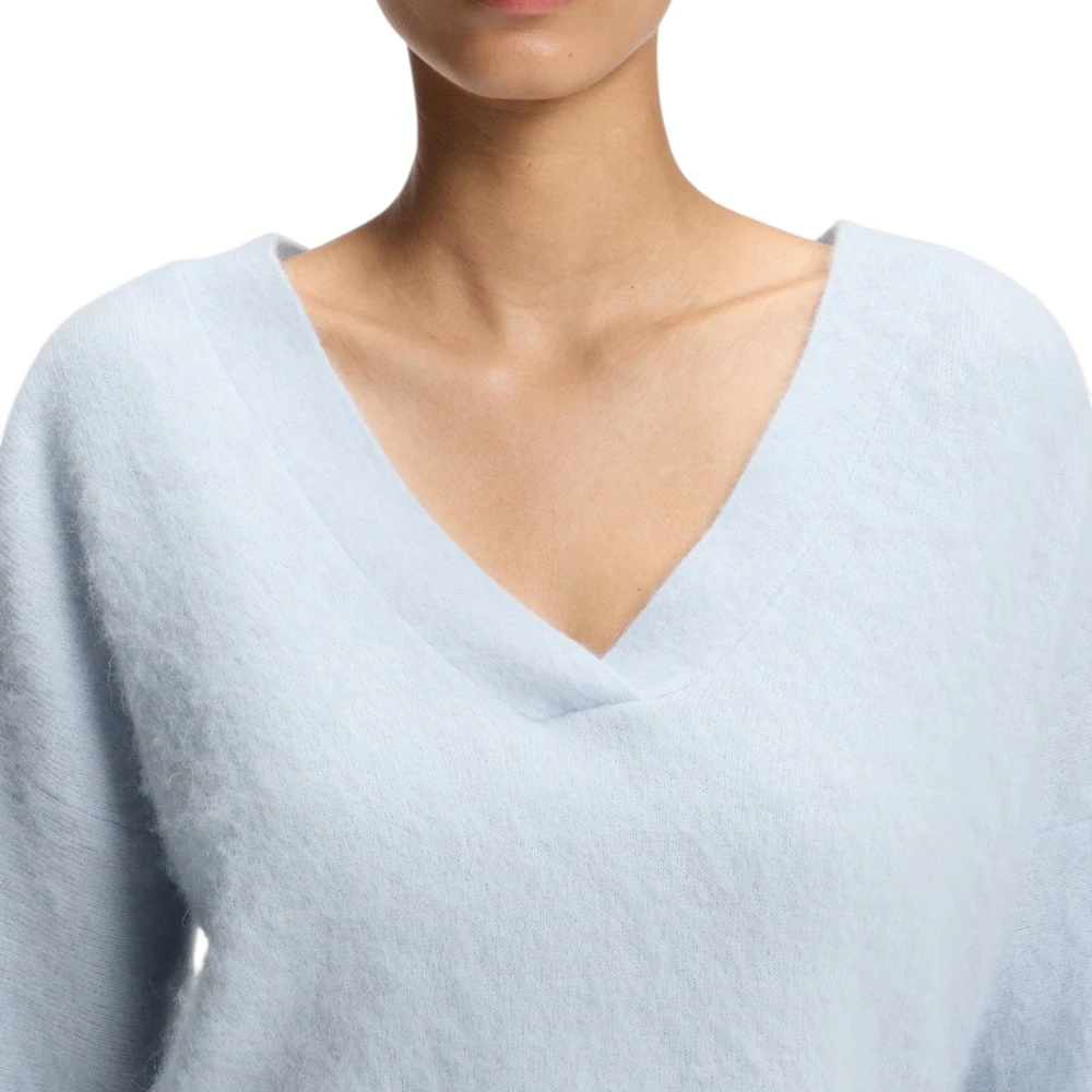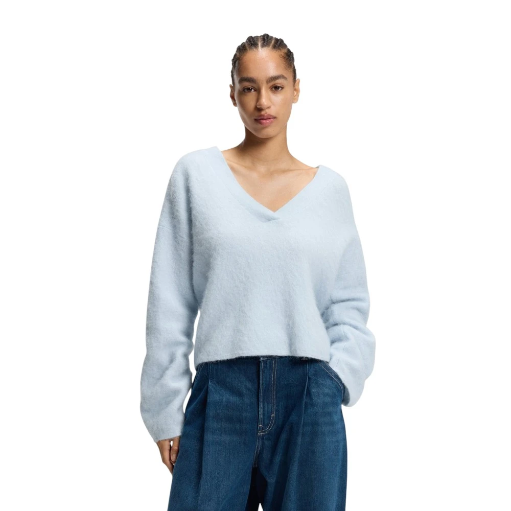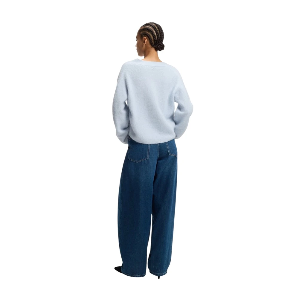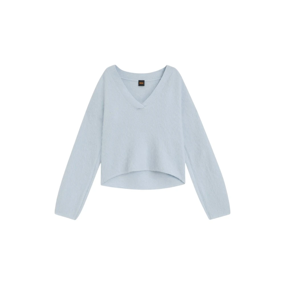Boss ayollar sviteri C_Fiti modeli och ko‘k rangda yengillik, qulaylik va zamonaviy nafislikni uyg‘unlashtiradi. Yumshoq rang obrazga yangilik va yengillik bag‘ishlaydi, sodda dizayn esa uni kundalik garderob uchun mos qiladi.