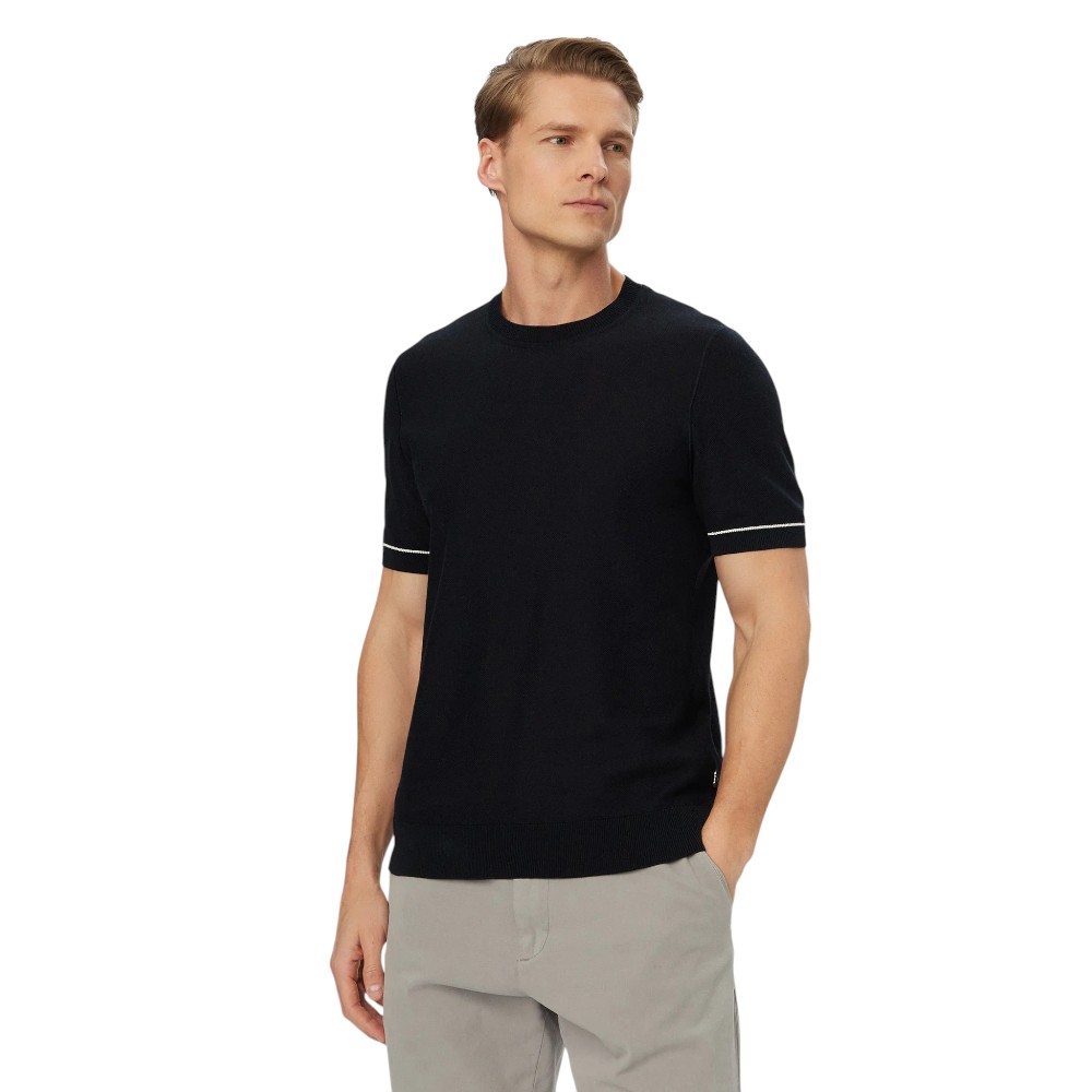 Boss erkaklar futbolkasi H-Nalon modeli to‘q ko‘k rangda minimalizm, qulaylik va zamonaviy uslubni birlashtiradi. Sodda dizayn va universal rang uni kundalik kiyimlar, faol hayot tarzi va zamonaviy shahar obrazlari uchun ideal tanlovga aylantiradi.