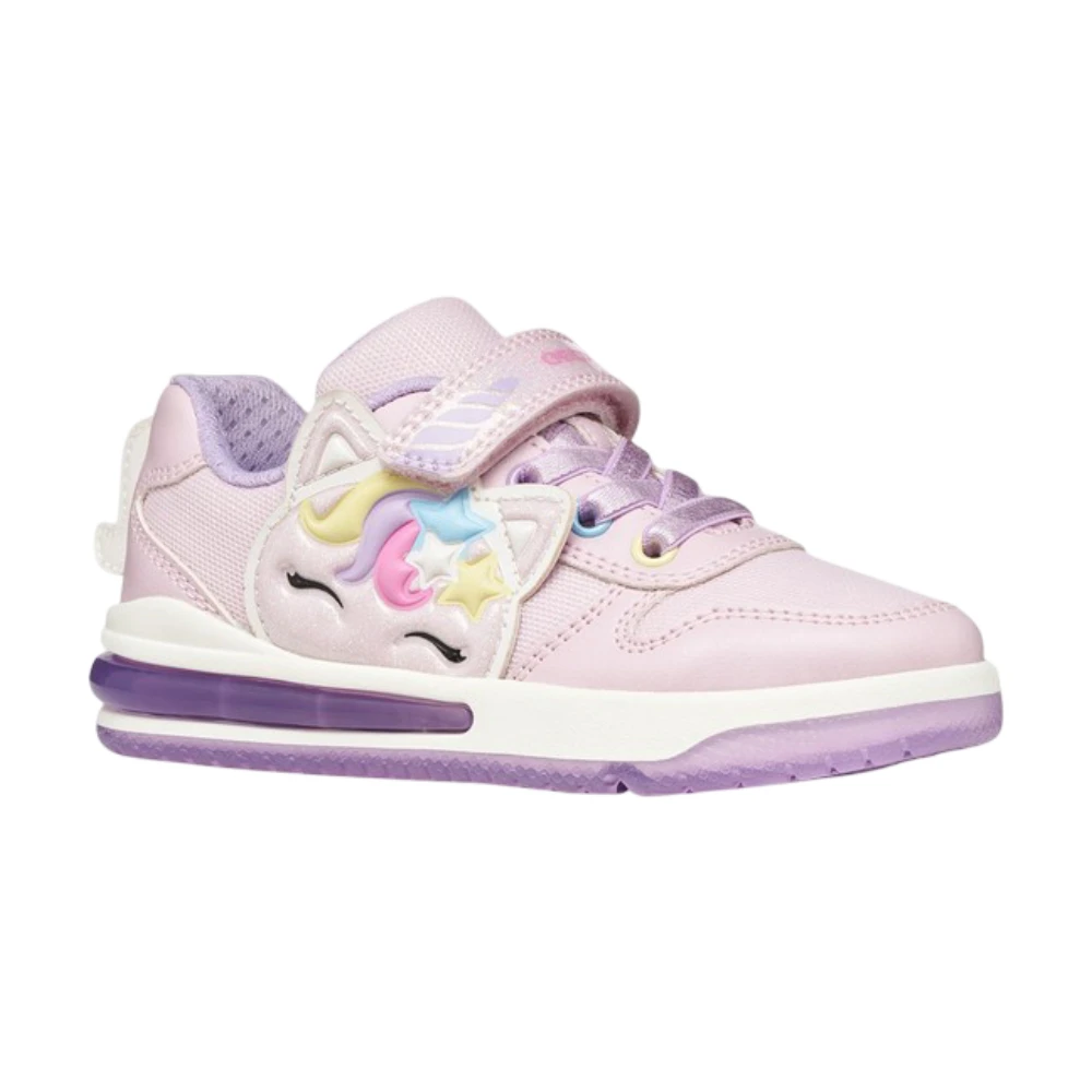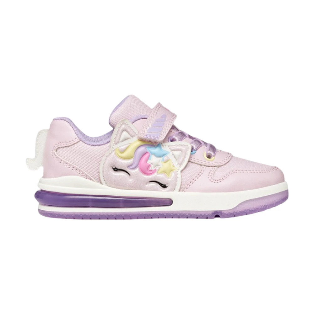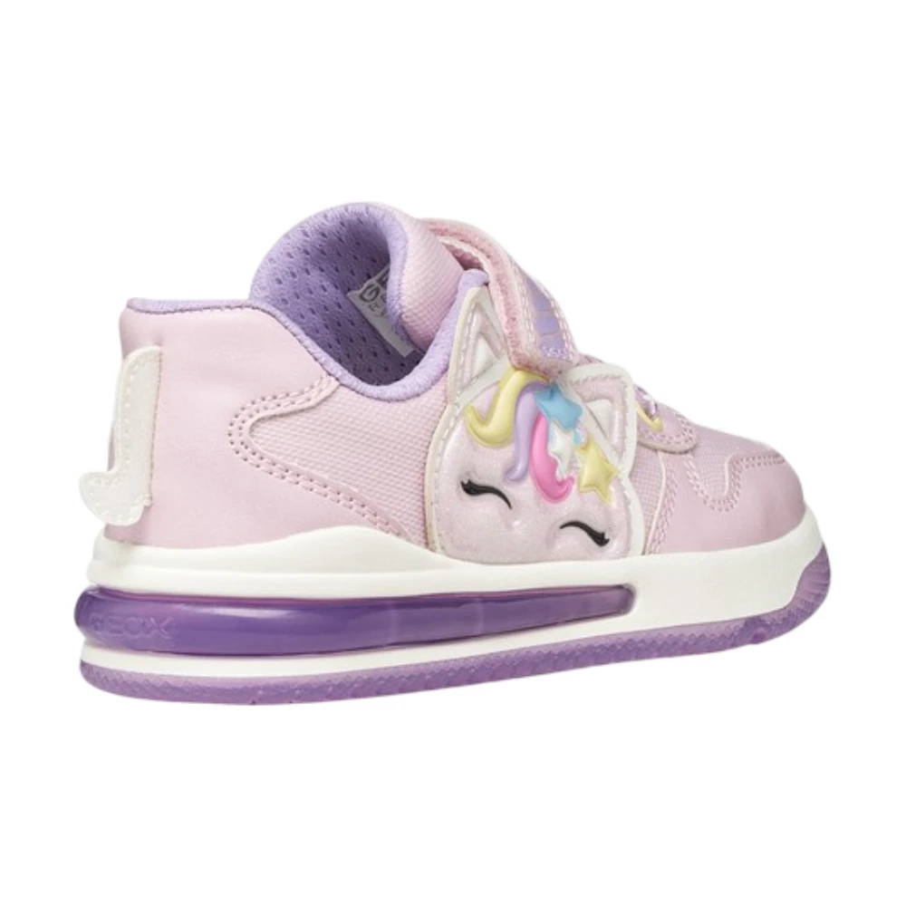 Yon qismidagi yoqimli yakkashox (unicorn) bezagi va pastel ranglar obrazga ertaknamo kayfiyat bag‘ishlaydi. Taglikdagi LED yoritish har bir qadamni yorqin qiladi — harakat paytida krossovkalar jonlangandek ko‘rinadi va bolalarda katta quvonch uyg‘otadi.