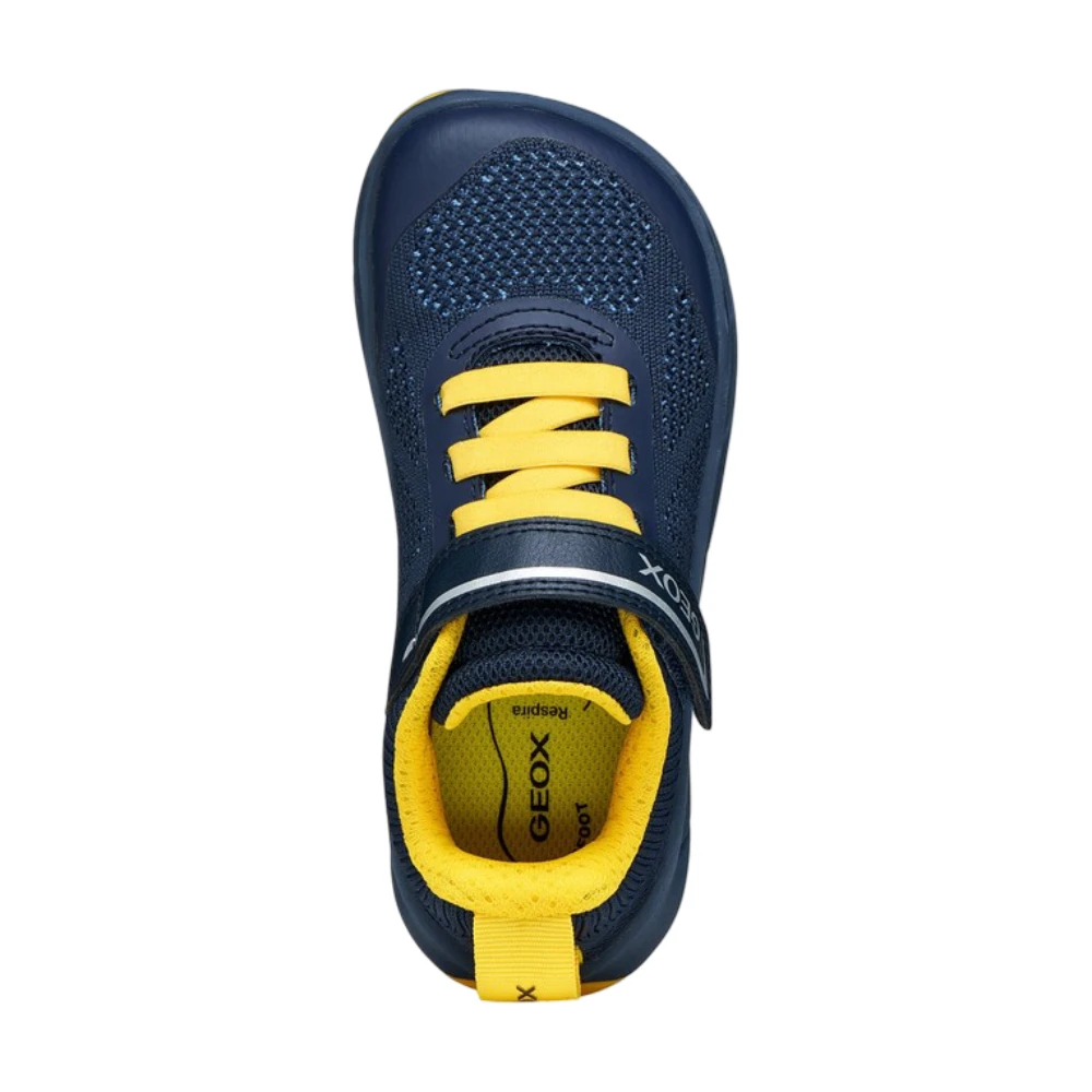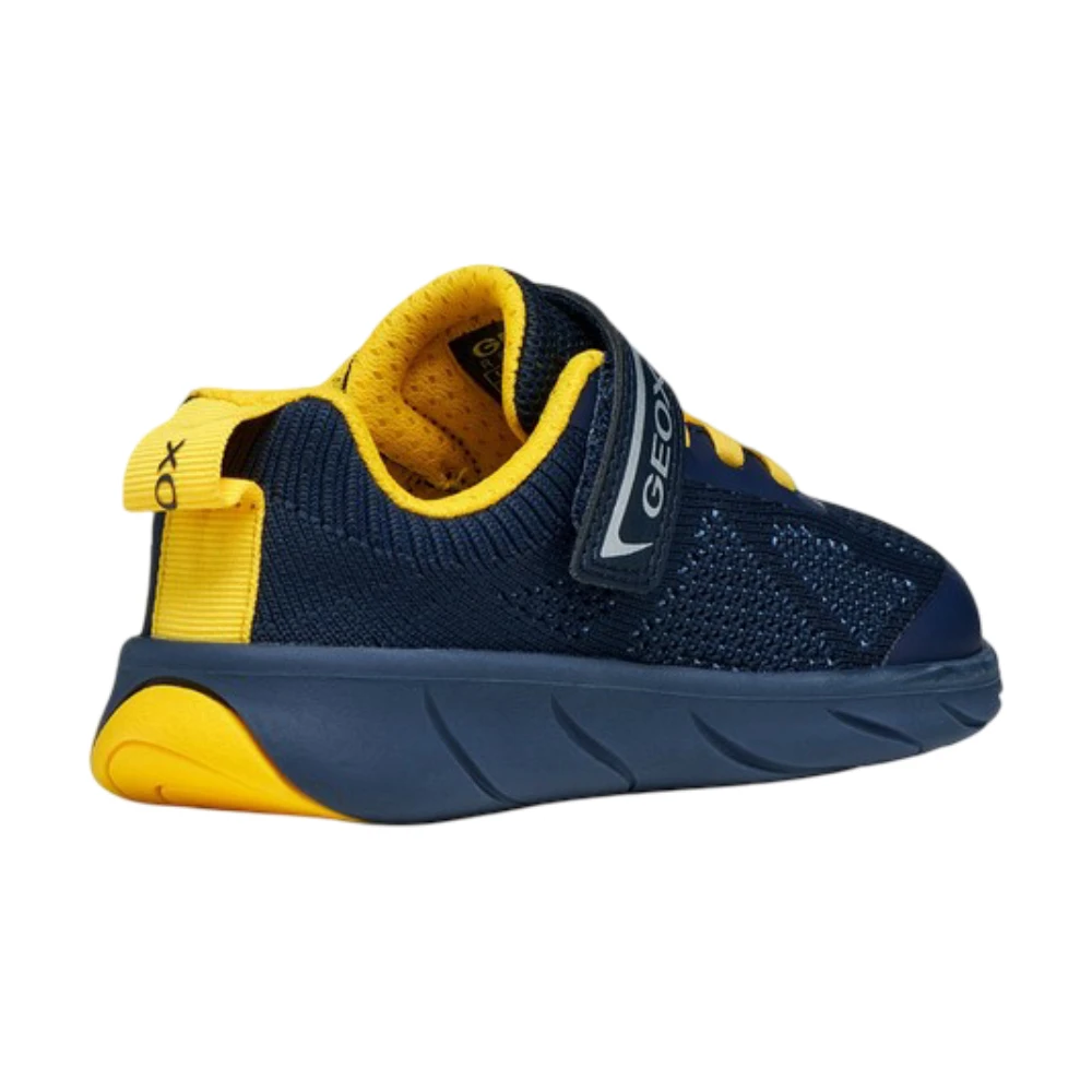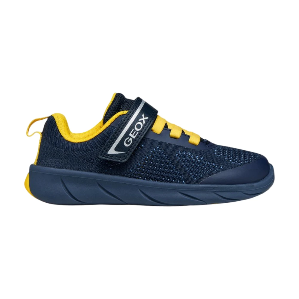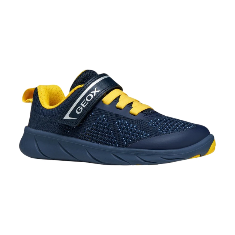 To‘q ko‘k rangdagi Geox Foot-Run bolalar krossovkalari — oyoqning tabiiy harakatini qo‘llab-quvvatlash uchun yaratilgan modeldir. Yorqin sariq aksentlar bilan dizayn zamonaviy va kundalik kiyimlar bilan oson moslashadi.