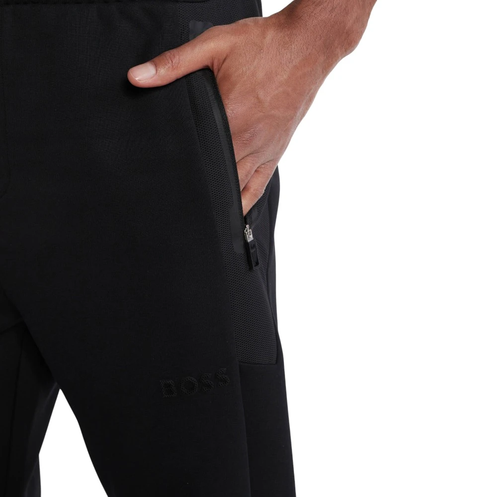 Чёрный цвет придаёт брюкам особую универсальность и делает их идеальной основой для стильных образов — от спортивных сочетаний с кроссовками до более собранных комплектов с поло или лёгким трикотажем. Практичный выбор для тех, кто ценит функциональность, эстетику и безупречное качество BOSS.