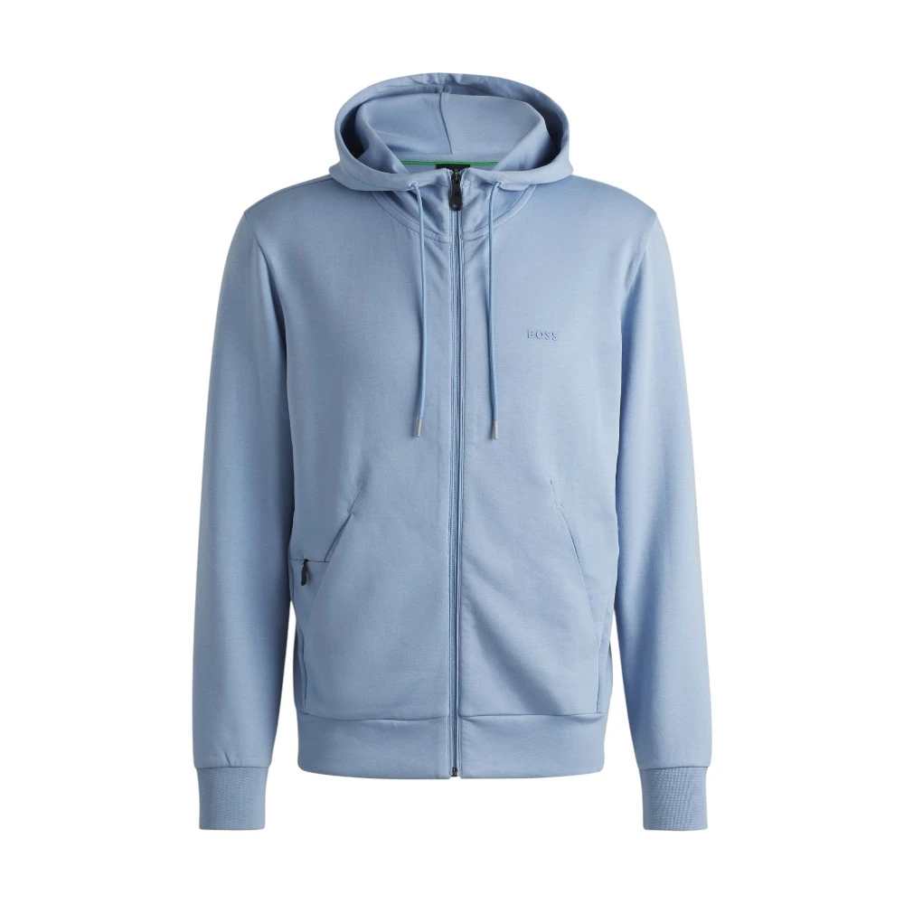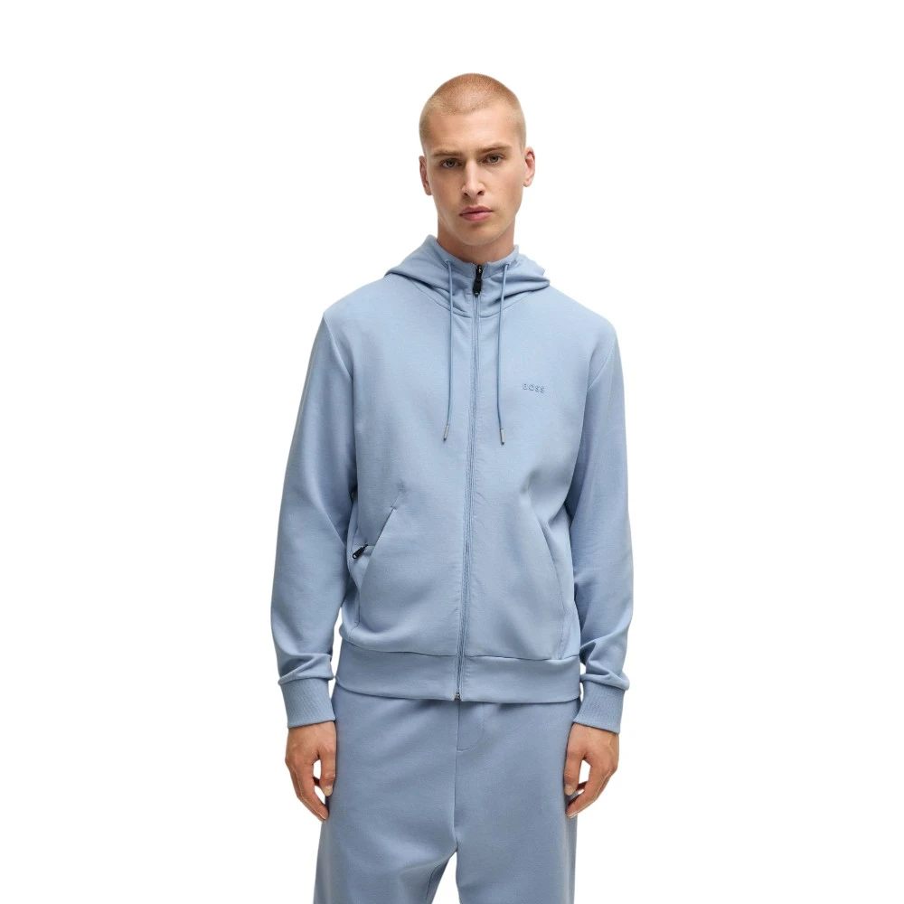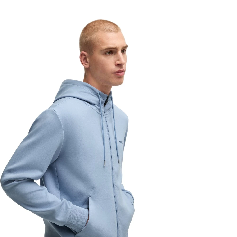 Фирменная вышивка BOSS на груди подчеркивает статус и внимание к деталям, а продуманная посадка обеспечивает аккуратный, собранный силуэт. Манжеты и нижняя кромка мягко фиксируют форму, создавая ощущение уюта без лишнего объема.