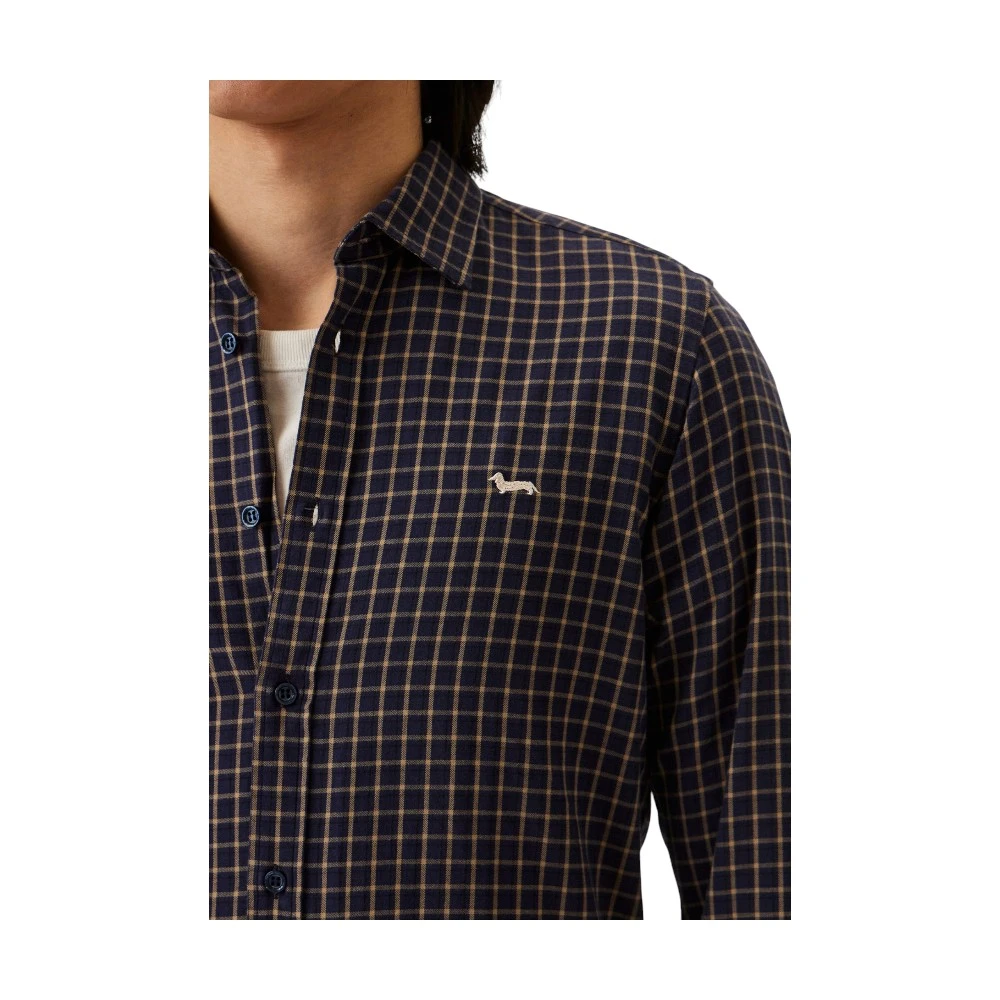Клетчатый рисунок в темно-синих и контрастных оттенках добавляет изделию выразительности, оставаясь при этом сдержанным и стильным. Небольшой фирменный логотип Harmont & Blaine с символом таксы на груди подчеркивает премиальный характер модели.